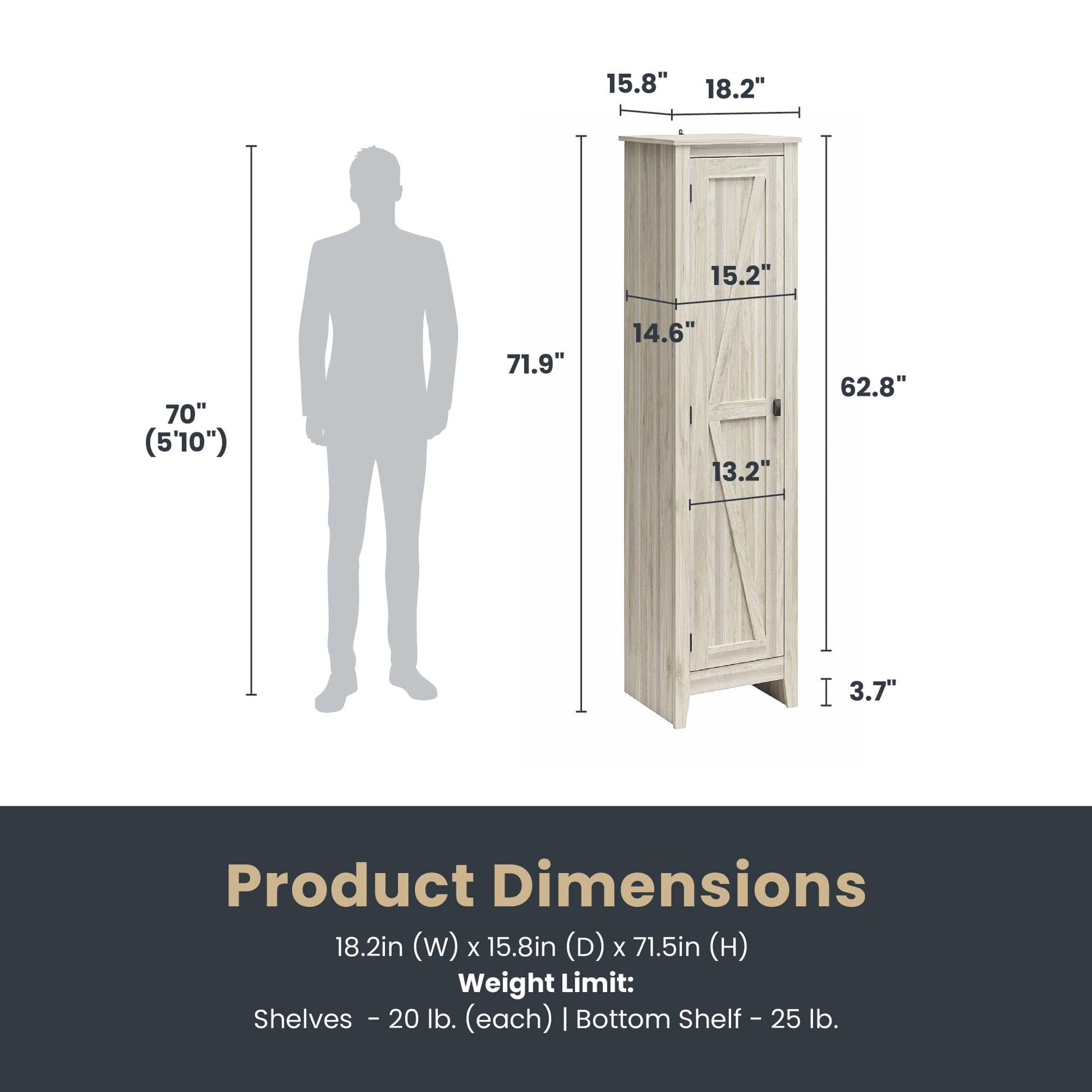 - Each storage cabinet ships flat to your door and requires assembly by 2 adults. Adjustable shelves hold 20 lbs. each and the fixed shelf holds up to 25 lbs. Assembled dimensions: 71.9"H x 18.2"W x 15.8"D