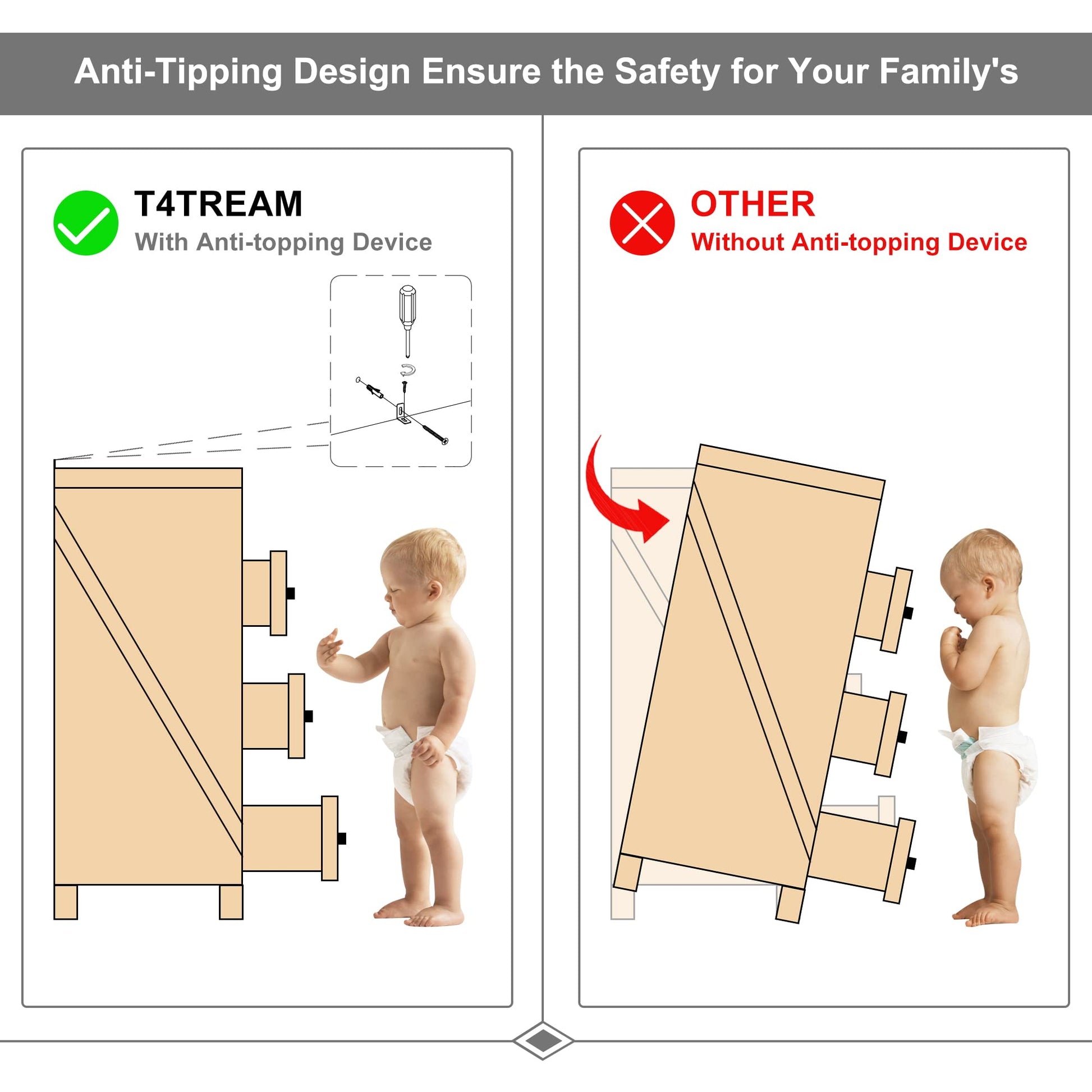 - The bedroom dresser is made of durable engineered wood for long term use, scratch resistant. No strong odor.The widened 2’’*2’’ dresser legs made the dresser does not slide easily, provide great durability and stability. With a support leg in the middle for added weight support.