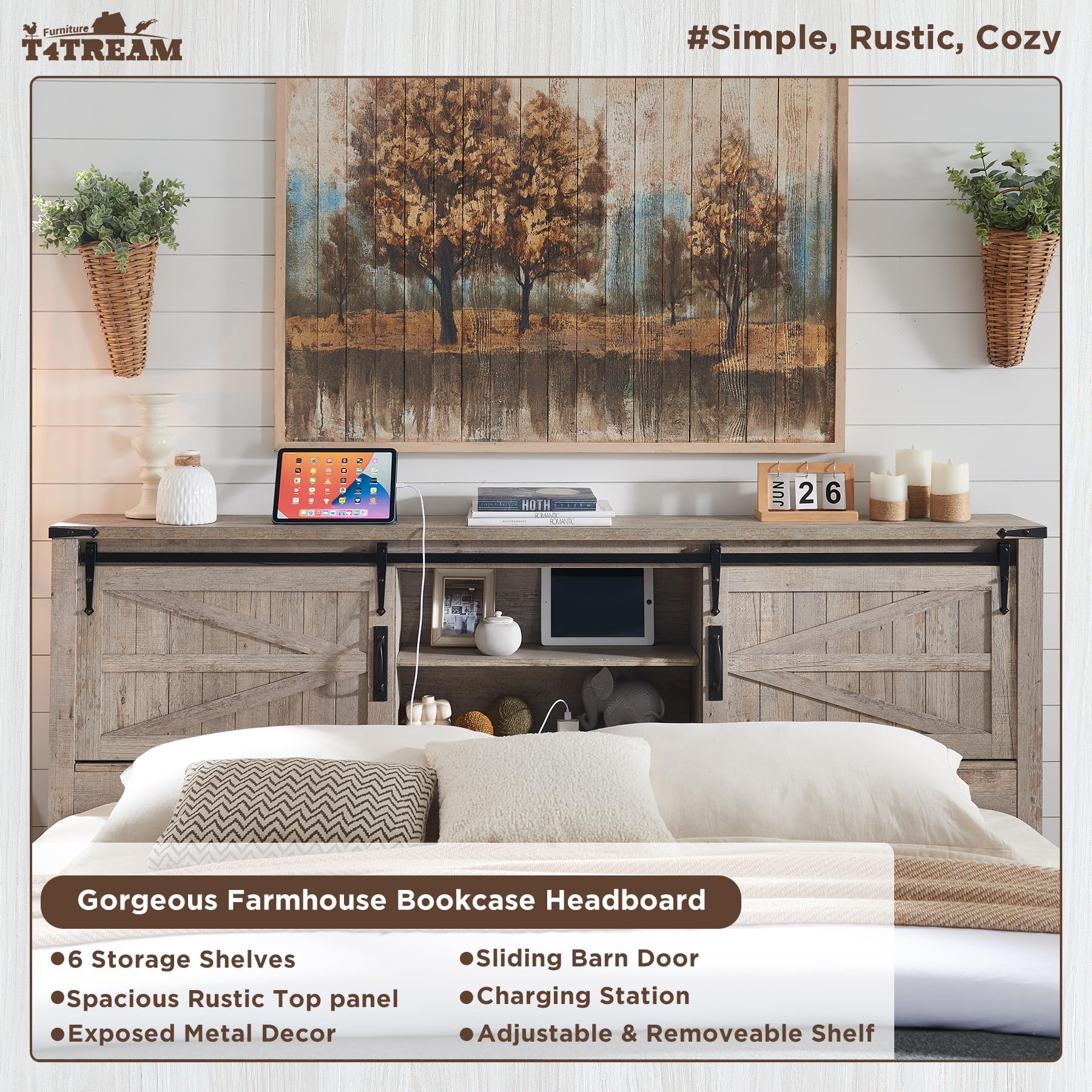 - Gorgeous and Glamorous: Our queen size bed frame features an exquisite wood Bookshelf headboard with sliding barn door and tall footboard with classical farmhouse elements. Its light rustic oak finish is wonderfully easy on the eyes, and it has natural variations in grain, color, and texture, giving every piece a unique look, and creating a rustic, charming, cozy bedroom retreat. Matches perfectly with other furniture in the t4tream bedroom furniture series.