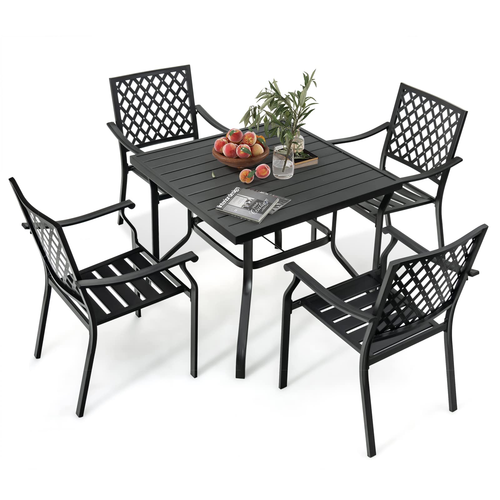 5 Pieces Metal Patio Dining Set, 37 Inches Square Dining Table with 4 Stackable Chairs