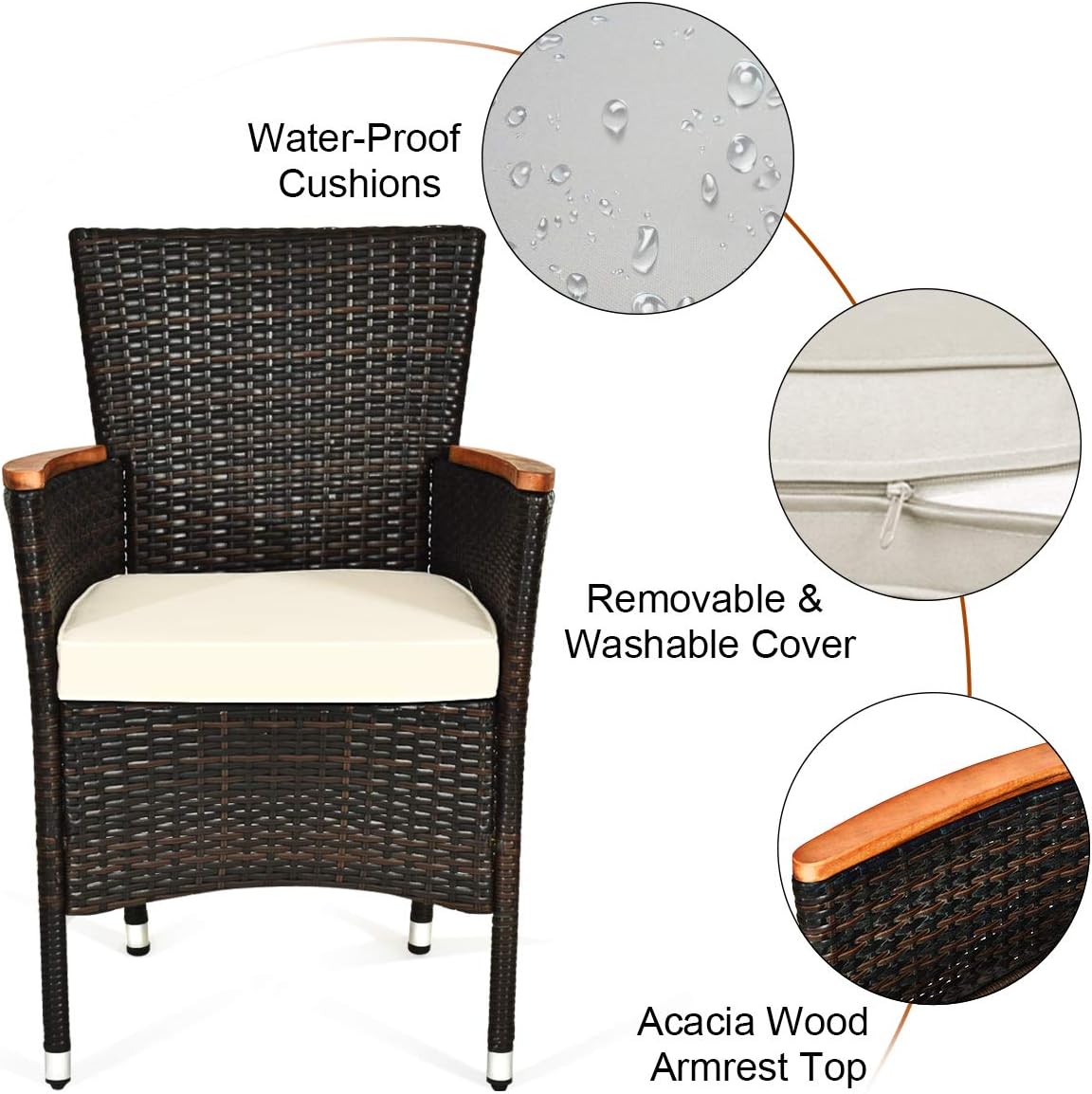 - Water-proof Cozy Cushions: In order to enhance comfort, this patio dining set comes with 6 soft cushions which are made of premium sponge and a water-proof polyester cover. Benefiting from quality materials, the cushions are not easy to collapse and suitable for outdoor use. Moreover, with smooth zippers, the cover of the cushion is removable and washable.