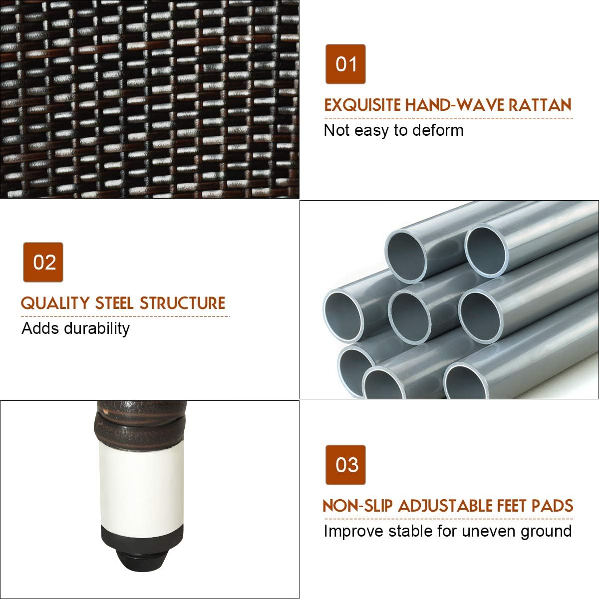 - Large Dining Table W/ Acacia Top: The outdoor dining set comes with a large dining table, which provides enough space for dining. Besides, unlike other traditional tempered glass table tops, this dining table is equipped with acacia wood top, which is more safer. Other than that, supported by four solid feet, this dining table is stable and heavy-duty.