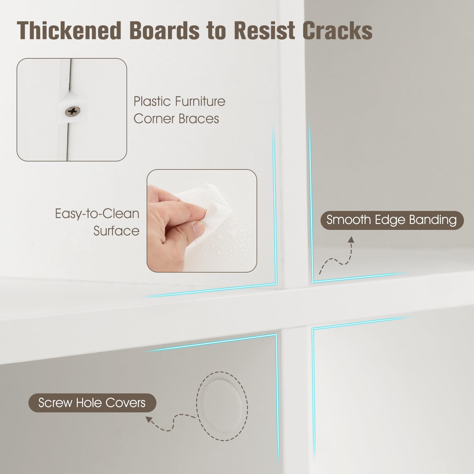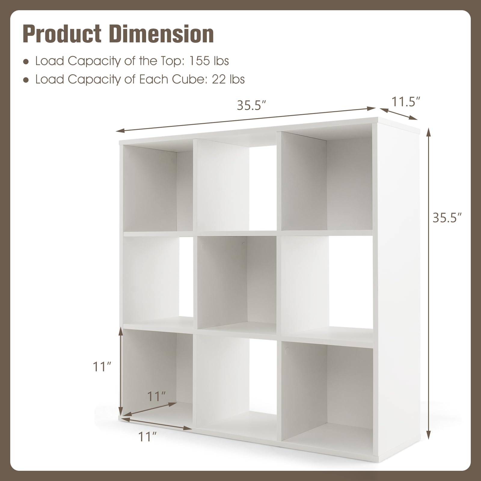 9-Cube Bookshelf, Wooden Open Bookcase, Dual Anti-Tipping Kits, Freestanding Modern Cube Storage Display Shelf for Living Room Kid's Room (White, 9-Cube)