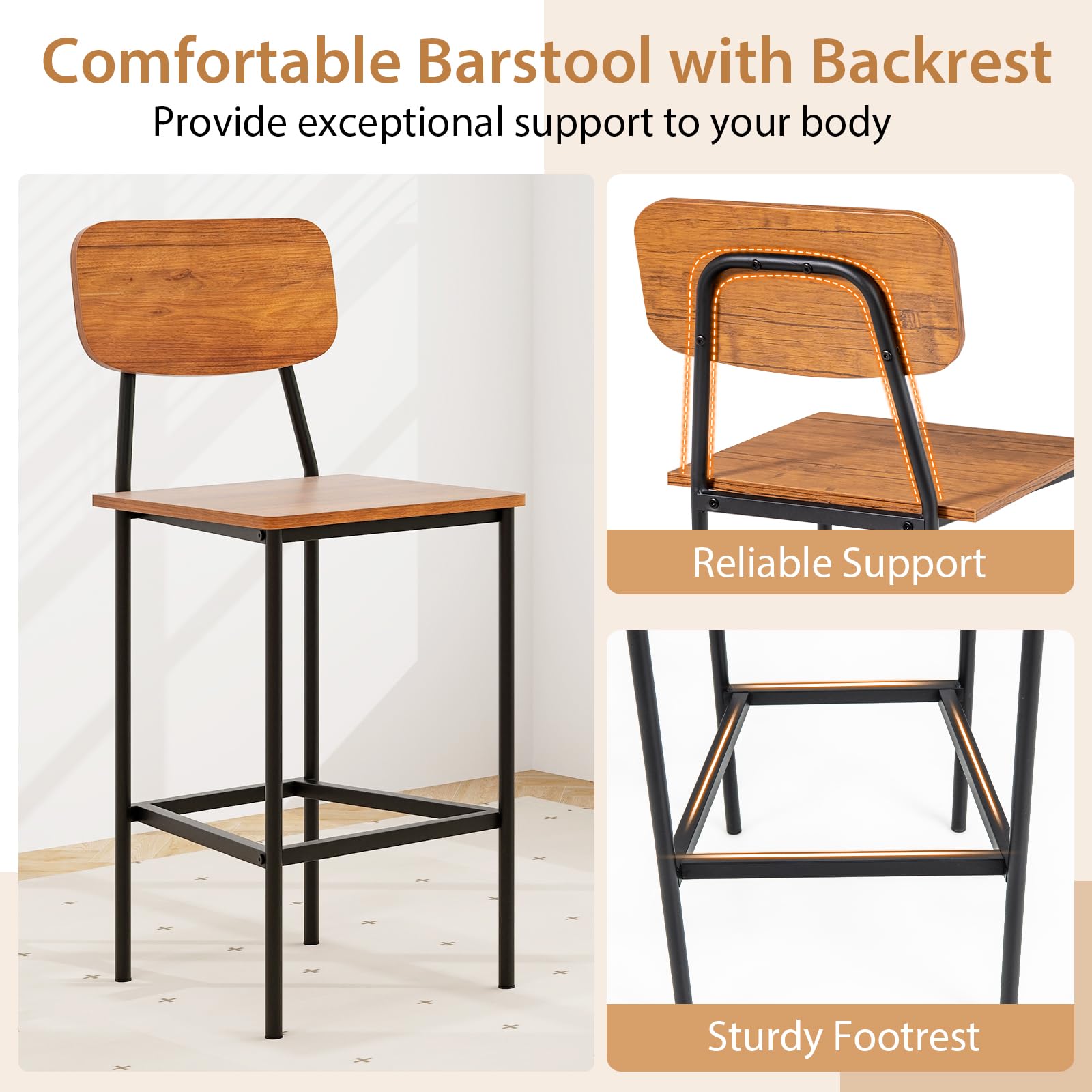 - The dining table set includes a counter-height dining table and four bar stools, providing a perfect setting for enjoyable dining or drinks with family and friends. The clean lines and elegant wood grain finish of the industrial table set allow it to seamlessly complement any room decor.
