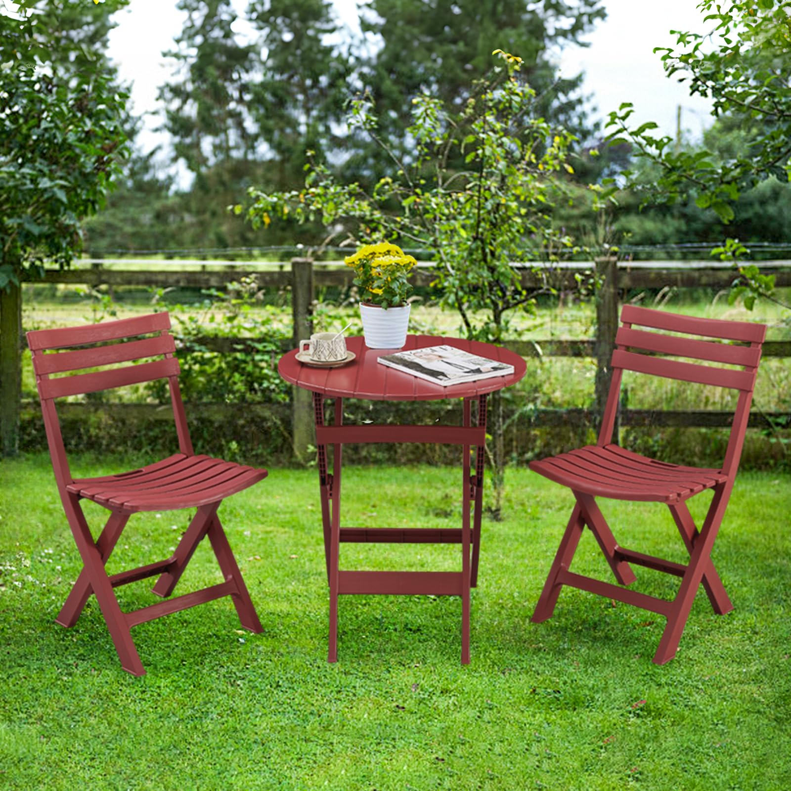 - Elevate your outdoor lounging experience with our exquisite patio bistro sets, meticulously designed for comfort, durability, and style. Crafted from high-strength polypropylene material, this 3 piece patio bistro set ensures long-lasting enjoyment without worries of corrosion or deterioration.