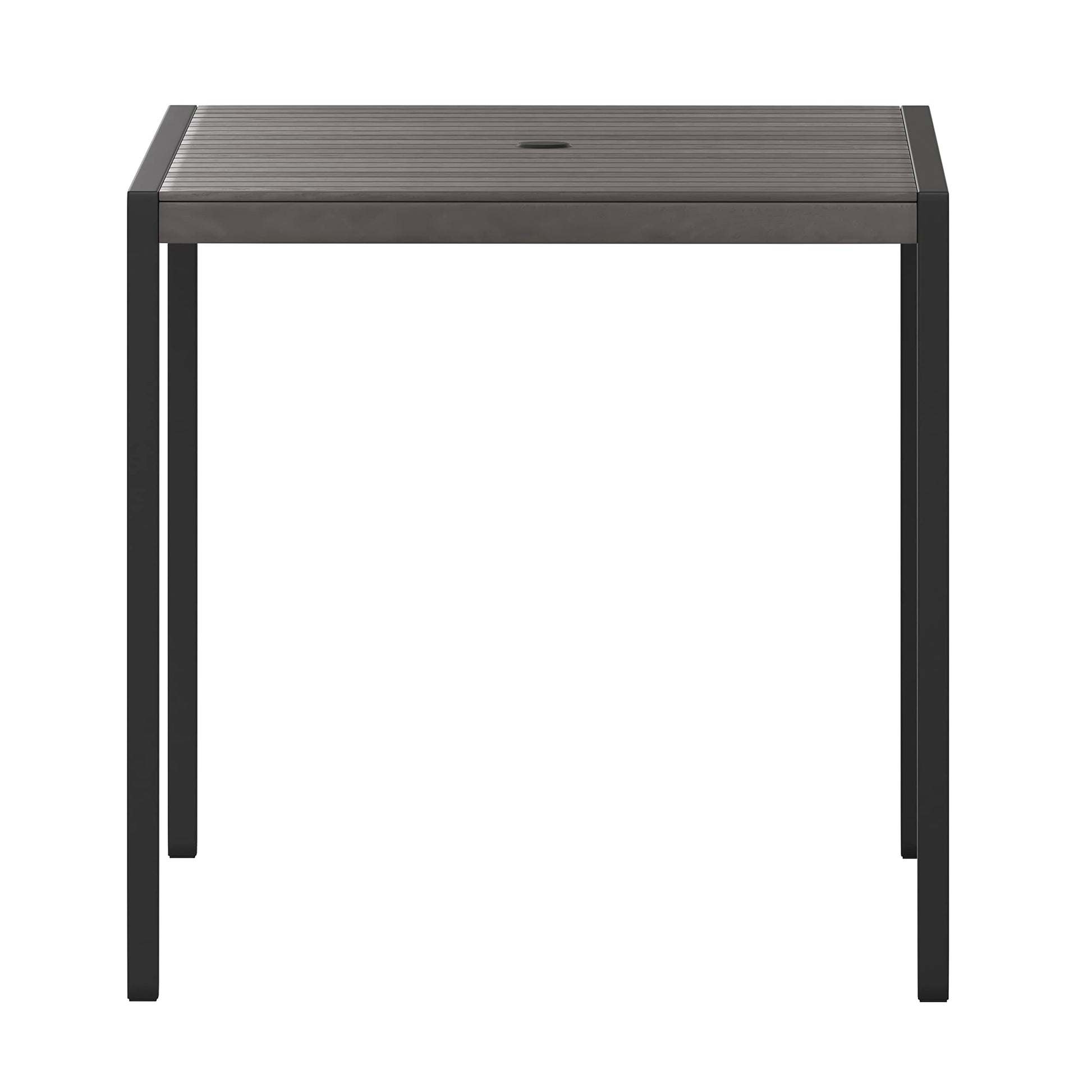 - ENDURING APPEAL: Modern gray wash synthetic teak slats with contrasting black metal frame; Umbrella holder hole; Seats up to 4 adults