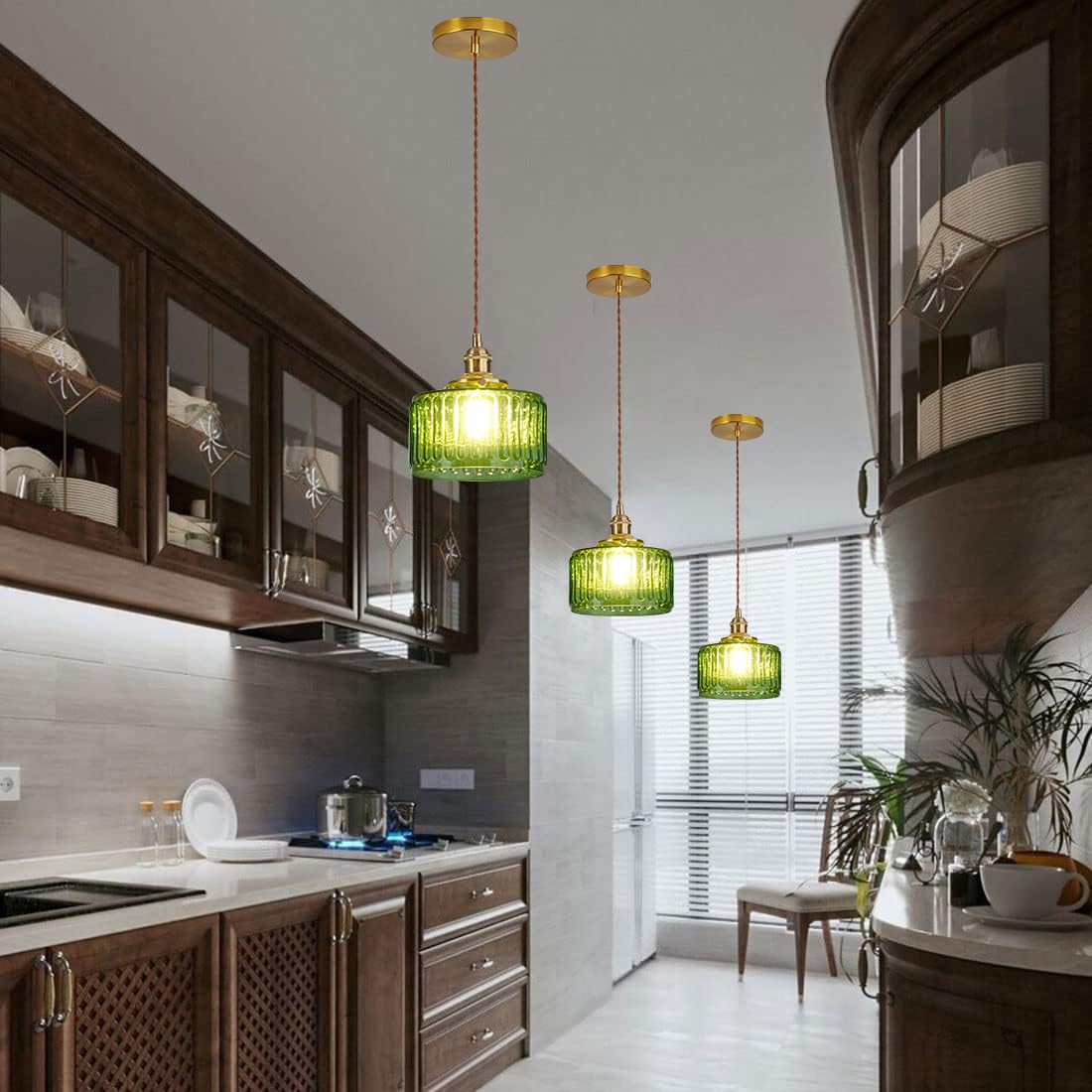 - Design: Glass pendant light Green with striped glass shades, Green glass shade simplistic and tasteful. Kitchen island pendant lights is very suitable for bedroom, living room dining room, foyer, hallway, etc