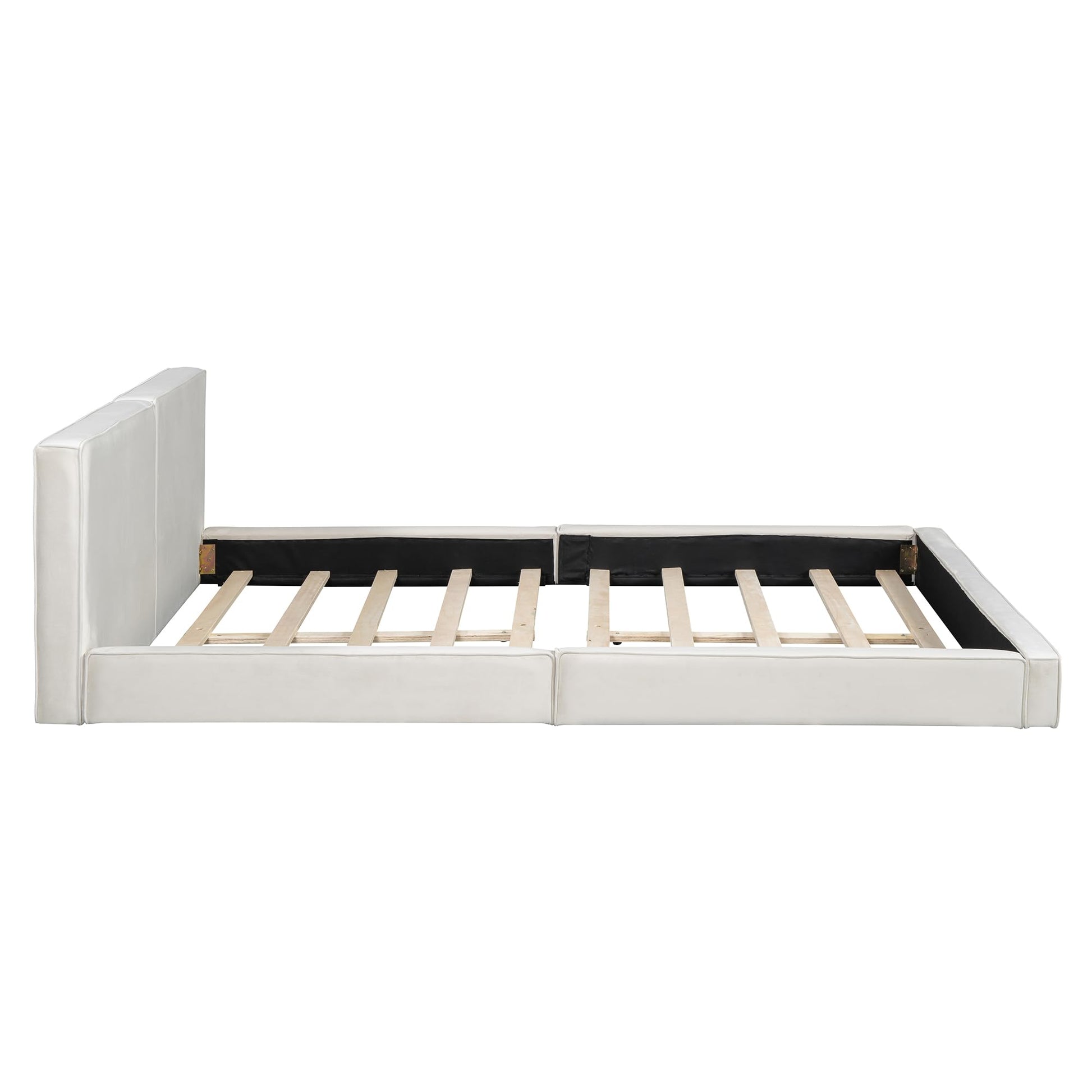 Upholstered Grounded Bed Platform Bed with Velvet Fabric
