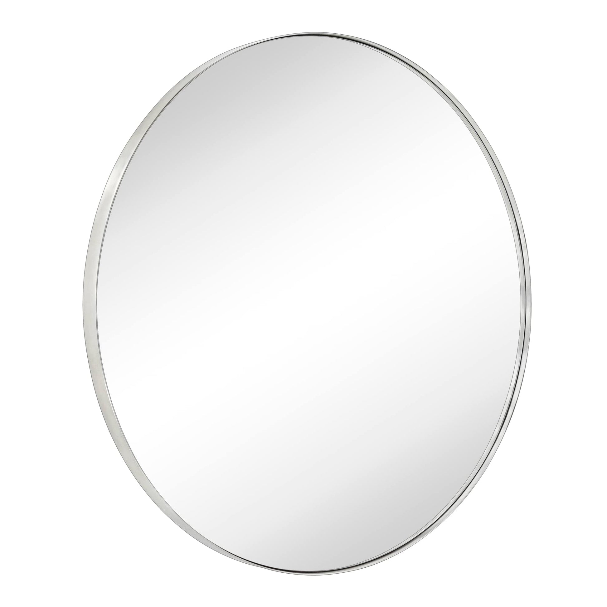 30 inch Brushed Nickel Round Mirror Circle Wall Mirror Brushed Silver Circular Round