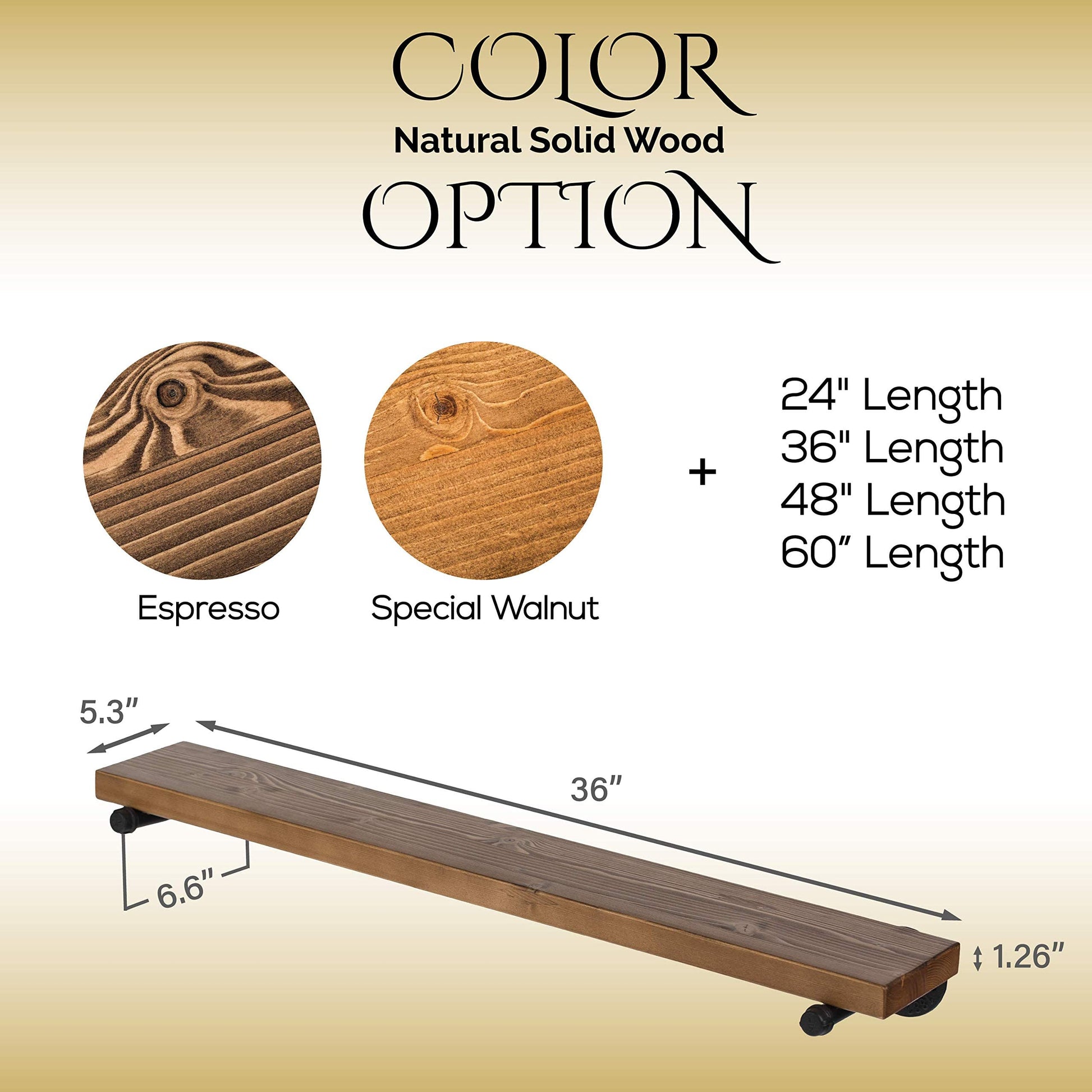 Industrial Pipe Wood Wall Shelf - 36" Espresso Real Wooden Shelving