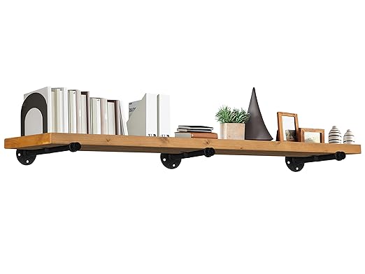 - Impress Your Guests With Your Rustic Shelves: Upgrade your rustic, farmhouse or French country interior decor with our heat-treated, solid wooden book shelves and modern industrial iron pipe brackets. Each shelf comes with 3 pipe brackets and 3 EXTRA pipe clamps that will ensure security and stability.