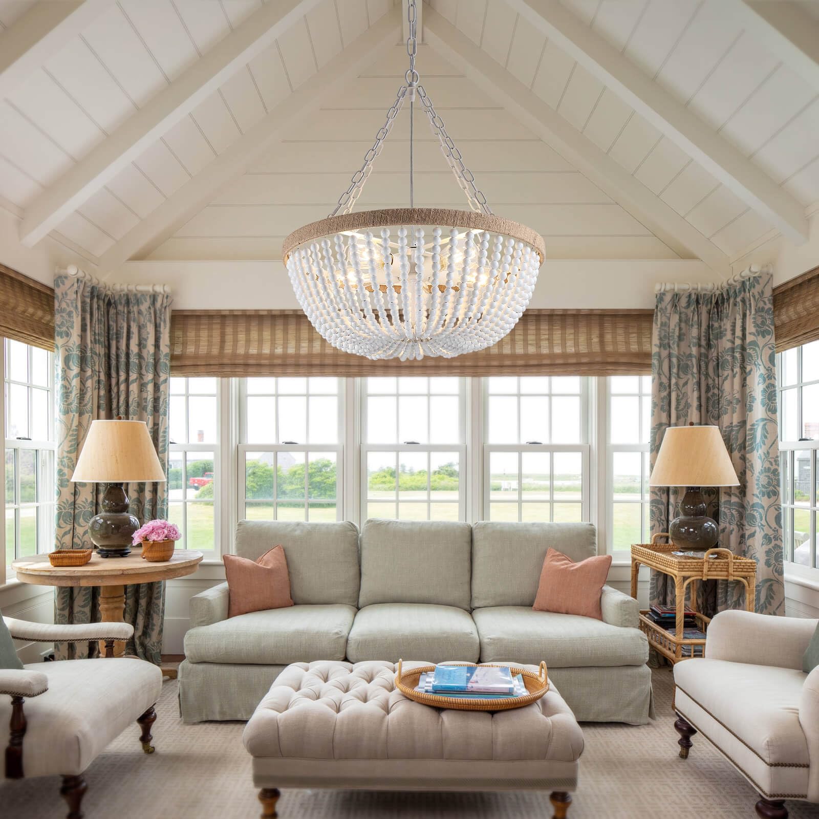 - Handmade Beading: Infuse your living space with the captivating essence of bohemian style using our meticulously crafted wood bead chandelier. This boho chandelier light fixture handmade with over 1000 oak white wood beads and natural hemp rope
