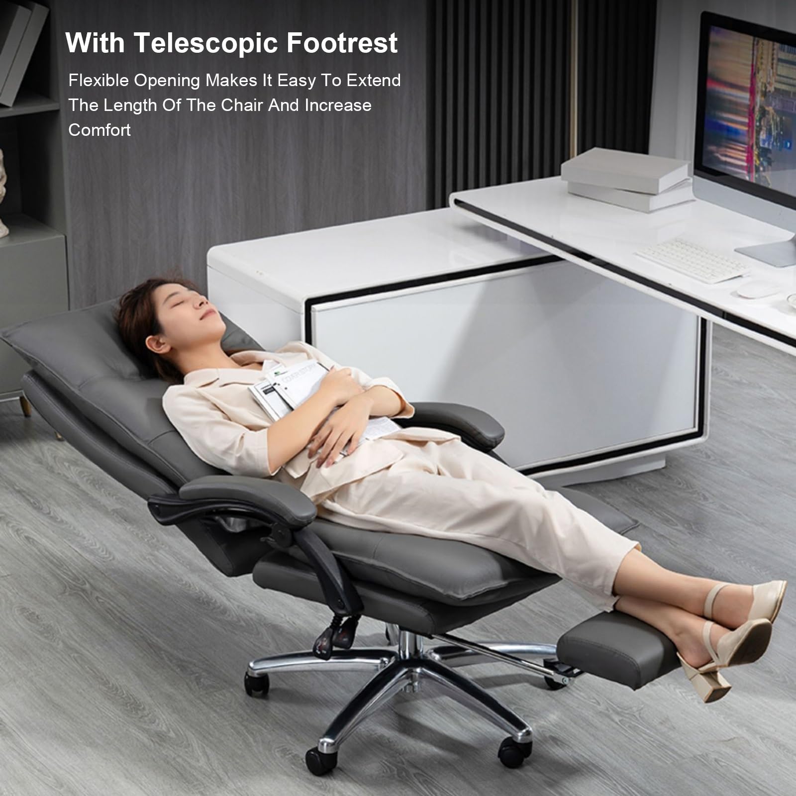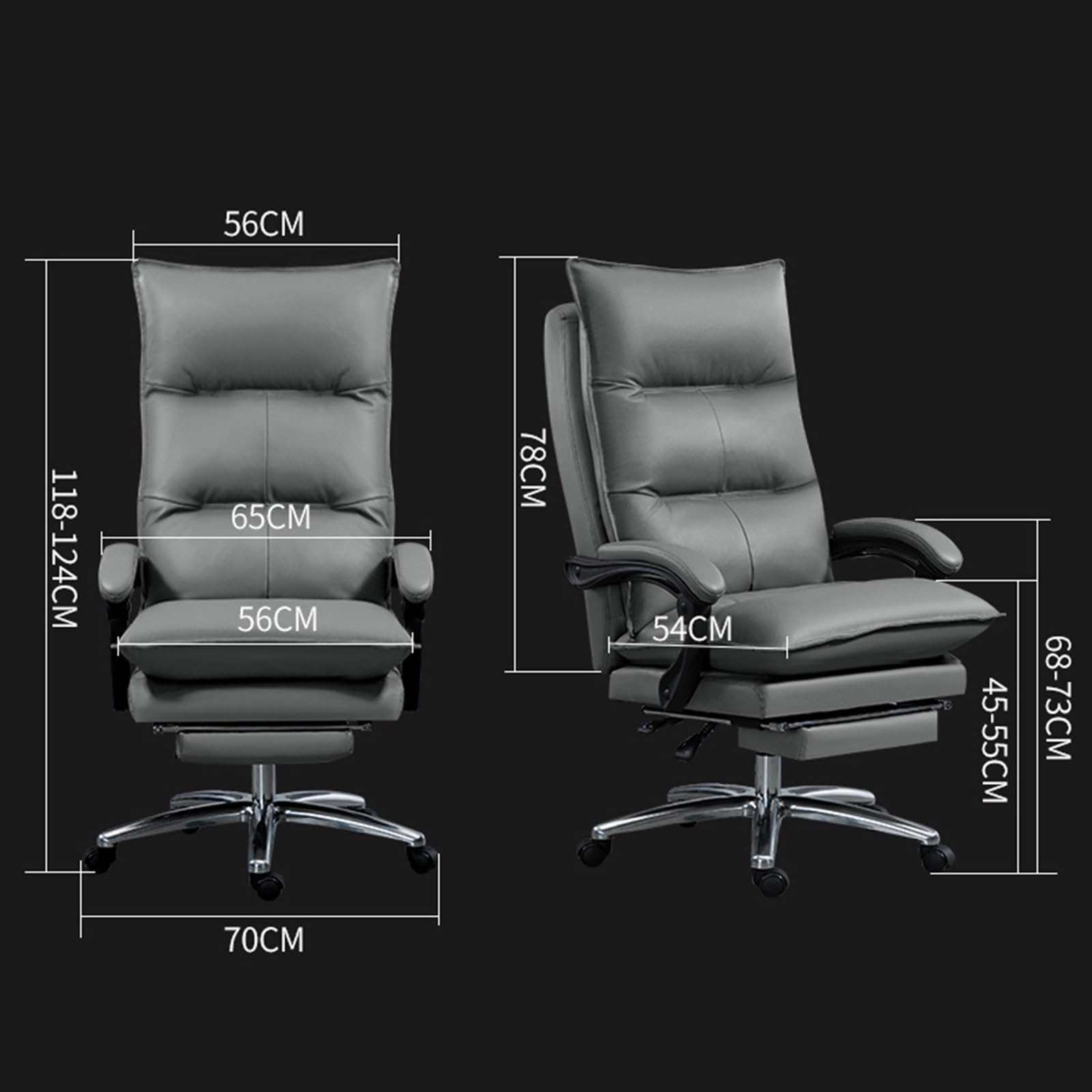 - Adjustment This Office Chair Through the adjustment lever, Height can be adjusted 118-124cm/46.4-48.8Inch, suitable for different height and desk. The backrest tilt is adjustable from 90° to 180°, Match with footrest, can lie flat when, Provides recliner-like comfort.