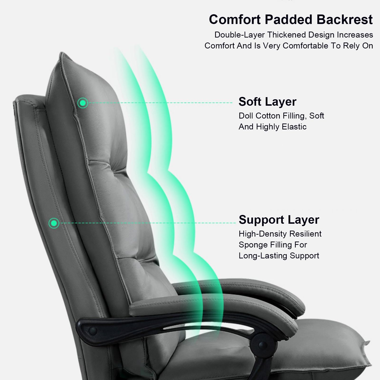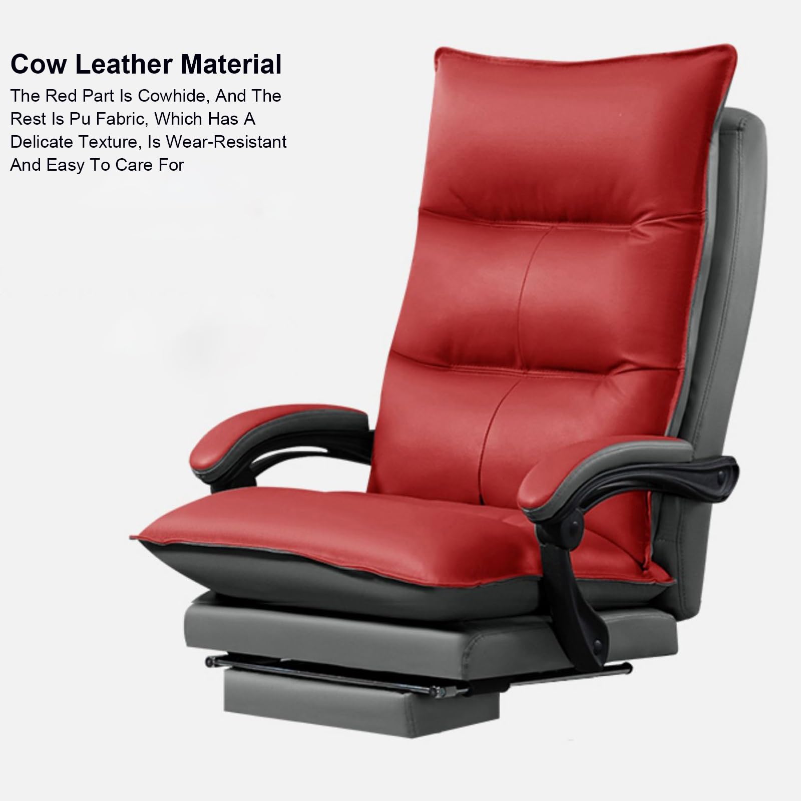 - Material The Office Chair Made of artificial board and metal, The surface layer is made of cowhide, which is wear-resistant, durable and elastic. The interior of the back cushion and seat bag is double-filled with doll cotton and high-resilience sponge, which is soft and comfortable and will not collapse after sitting for a long time.