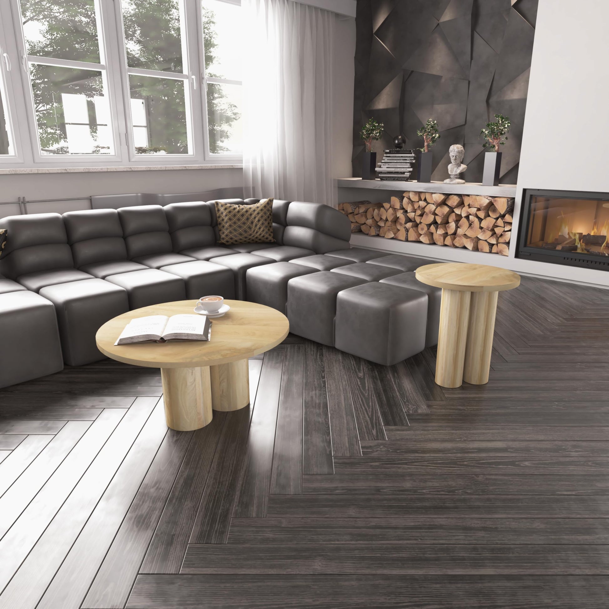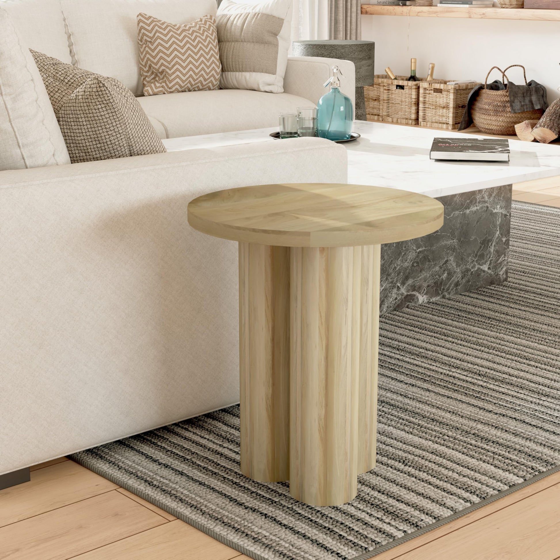 Hazel Side Table with 3 Pillar Legs, Handcrafted Natural Brown Mango Wood