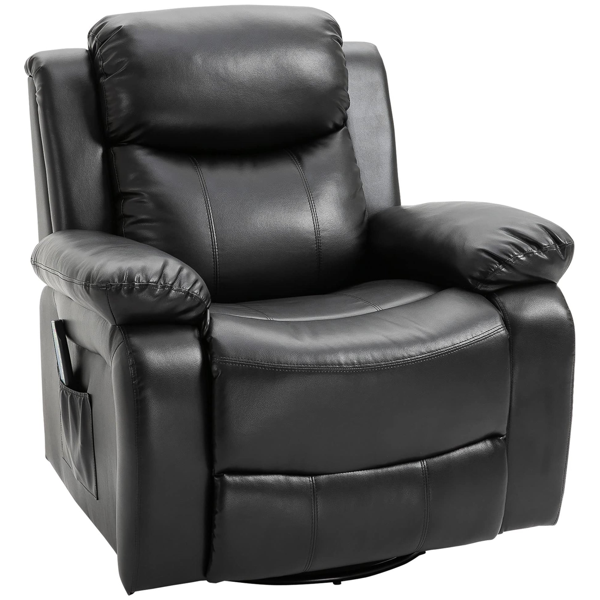 TheraLuxe 8-Point PU Leather Swivel Rocker Recliner with Remote & Massage