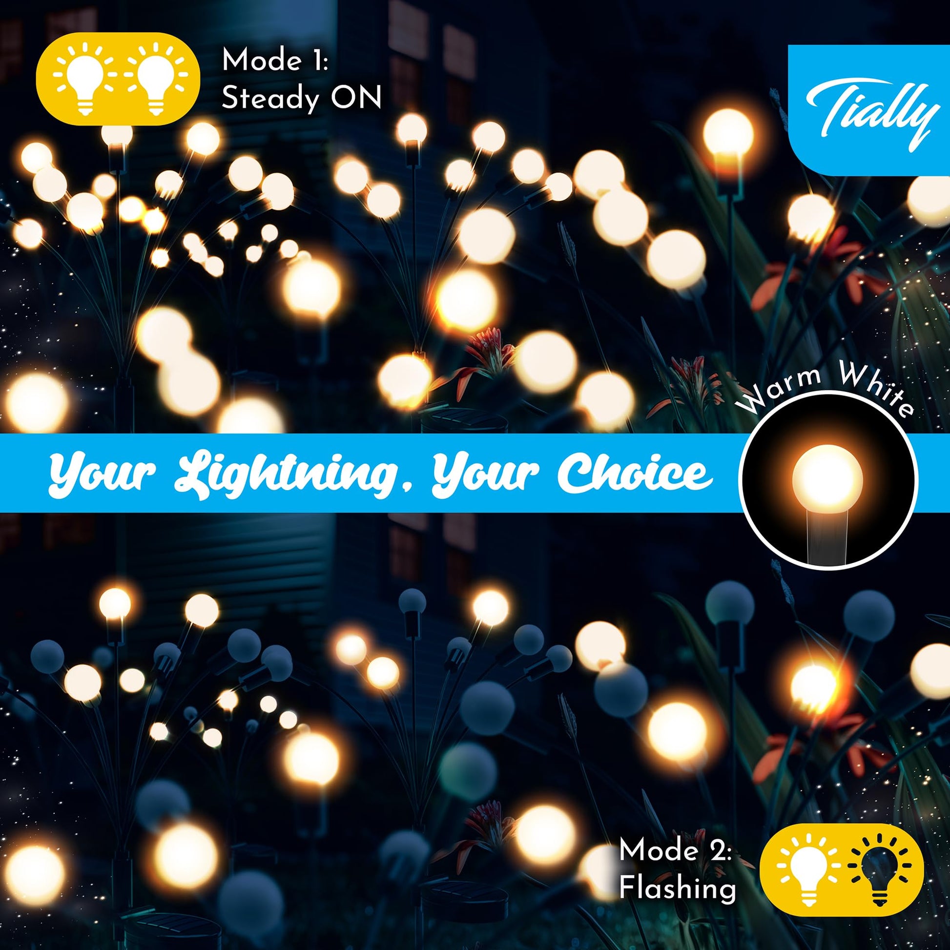 - Illuminate your evenings with the gentle warmth of our Solar Garden Firefly Lights, casting a spell of tranquility and enchantment over your outdoor space;