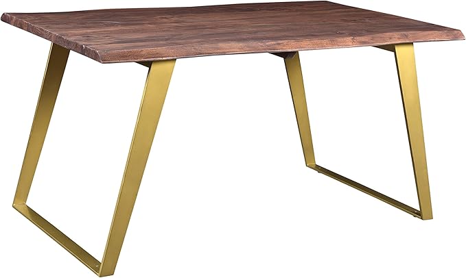 TIMBERGIRL Sheesham Live Edge Gold Legs Dining Table, 60, Brown