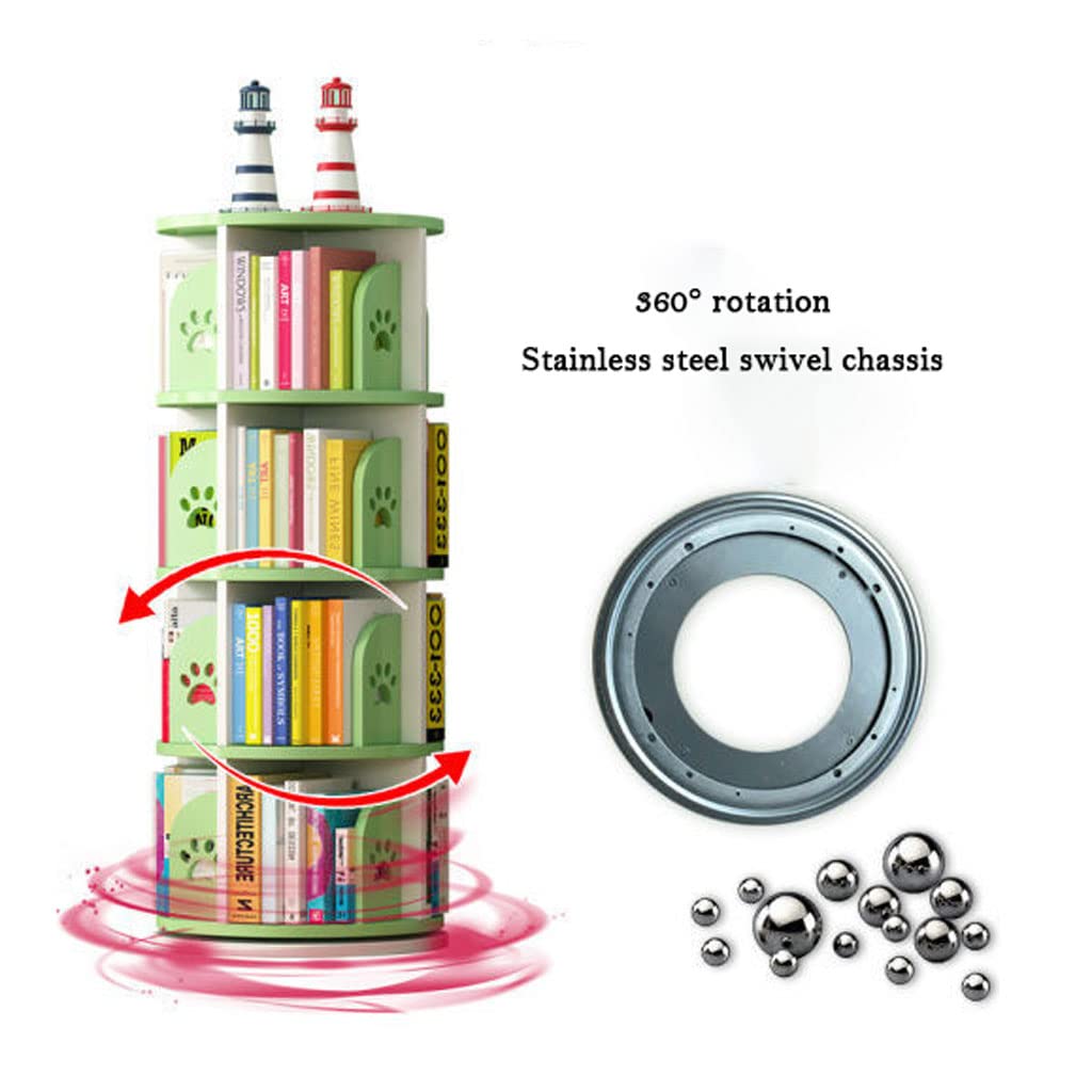 Rotating Bookshelf, 360 Display Corner Bookshelf for Small Space Green Bear Paw Pattern