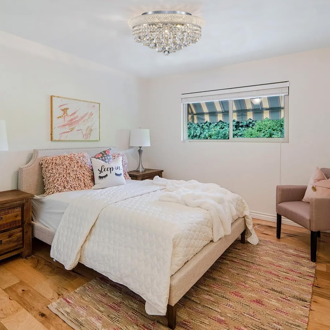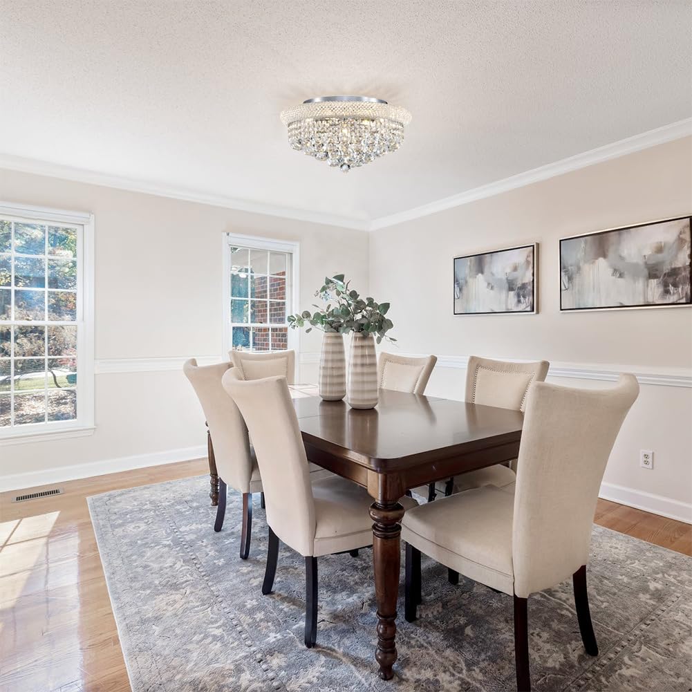 Modern Flush Mounted Crystal Chandeliers - Diameter 18 inch Chrome Ceiling Chandelier