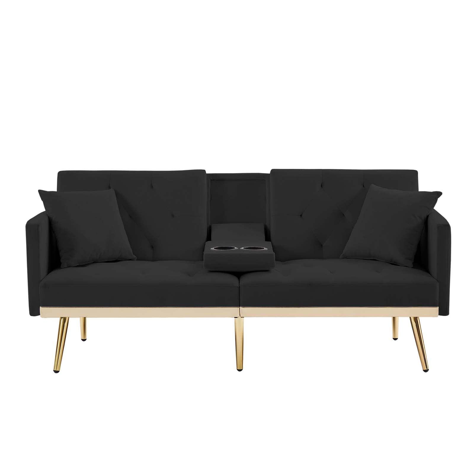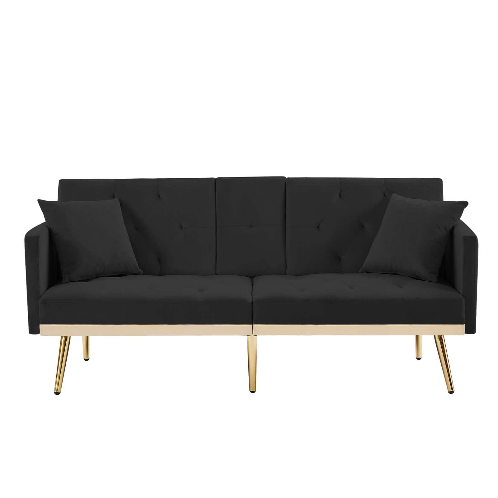 - STURDY AND HIGHLY COMFORTABLE - Featuring popular velvet fabric and 6 chrome metal legs, angled backrests and tight square arms for durability, the convertible futon sofa blends comfort and modern style that will last for years in your living space. Velvet fabric is more breathable and durable, so it won't fade. Provides you with a high level of comfort.