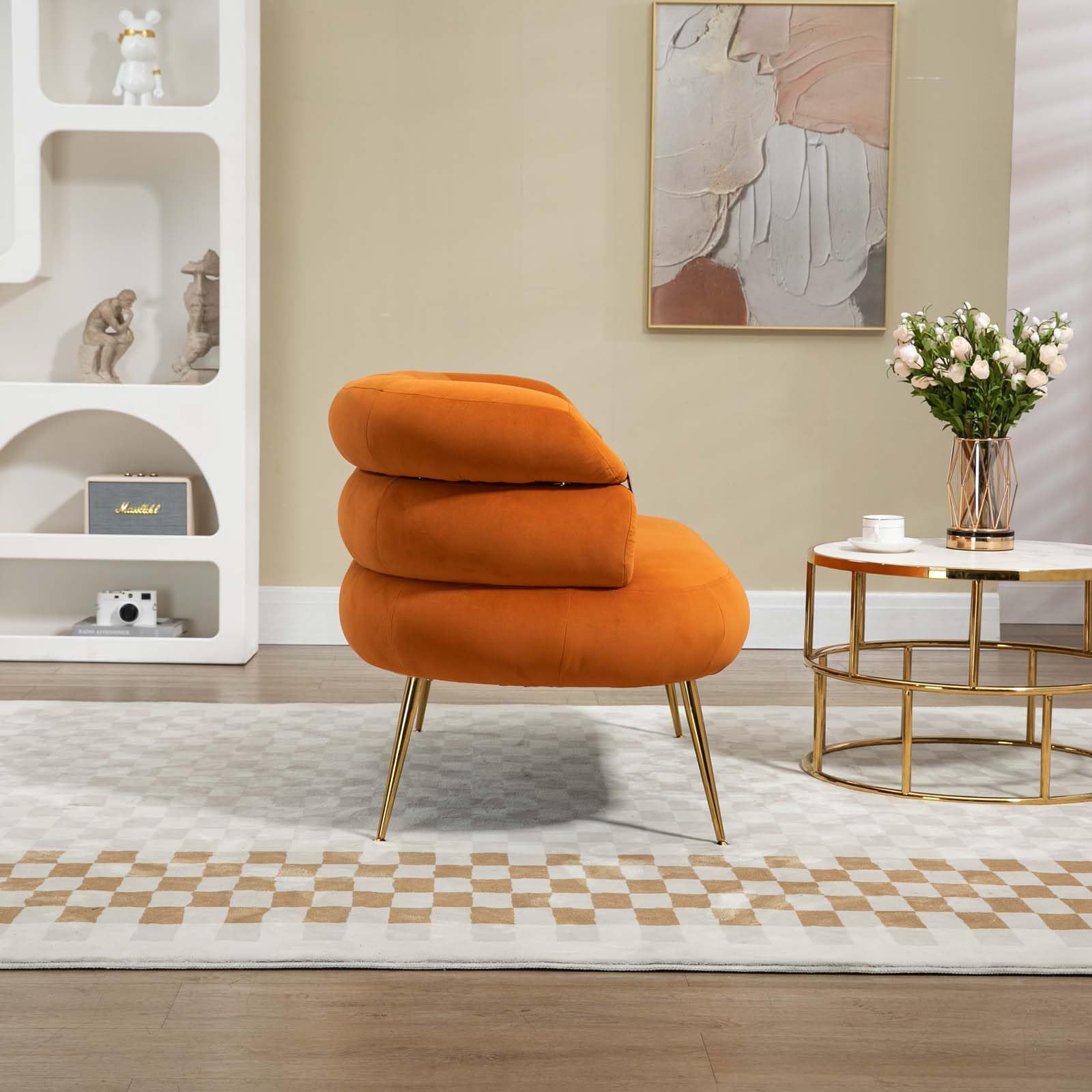 - EXQUISITE DESIGN - The backrest is subtly secured with two long cylindrical shape pillows, which not only highlights the uniqueness of the velvet sofa, but also provides sufficient support. In addition, the golden decorative piece on the edge of the armrest echoes the golden metal leg, with more emphasis on the unique charm of the small couch.