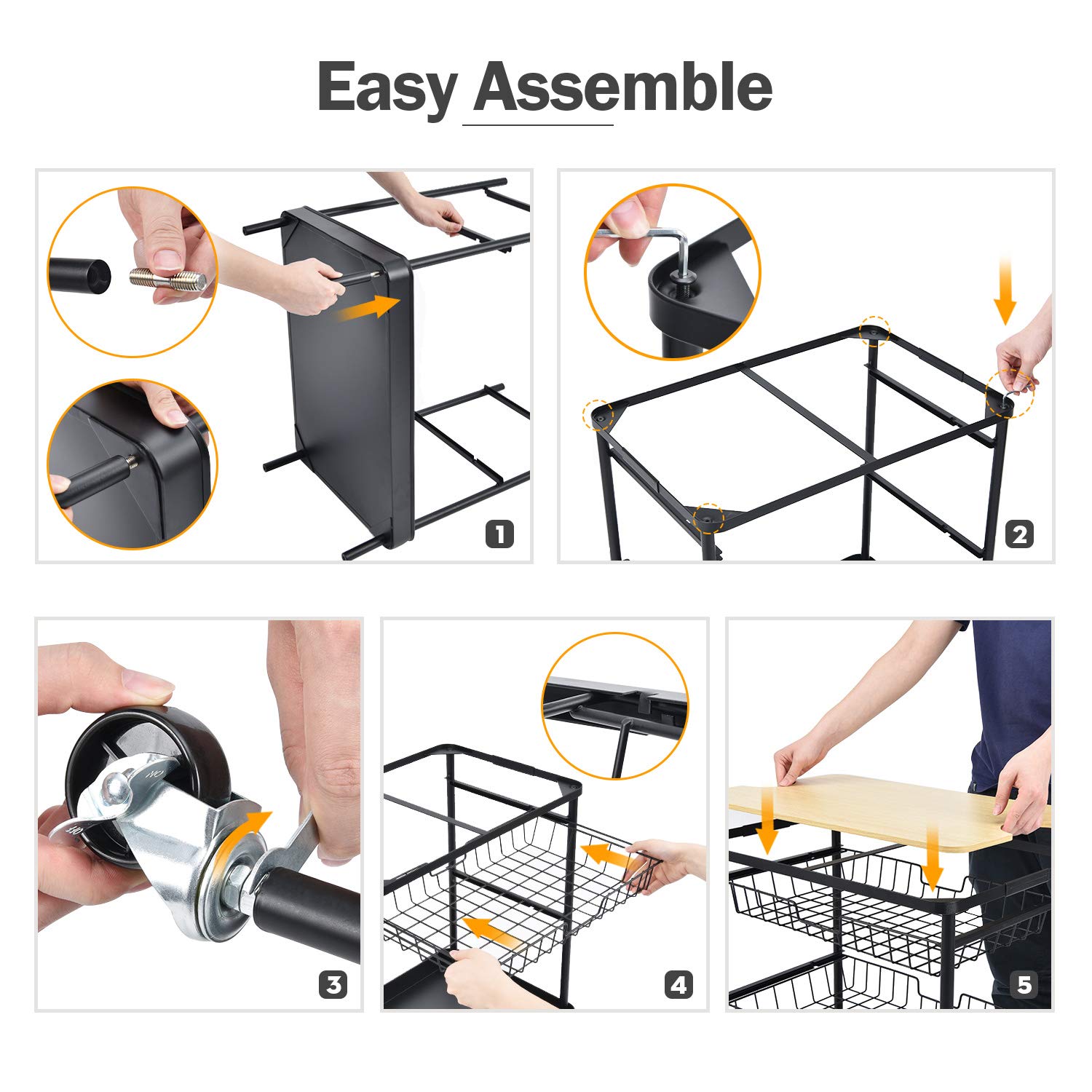 - Instruction manual included in the package provides step by step instructions for assembly. A wonderful kitchen serving cart is completed within just a few minutes, screws and tools are provided.