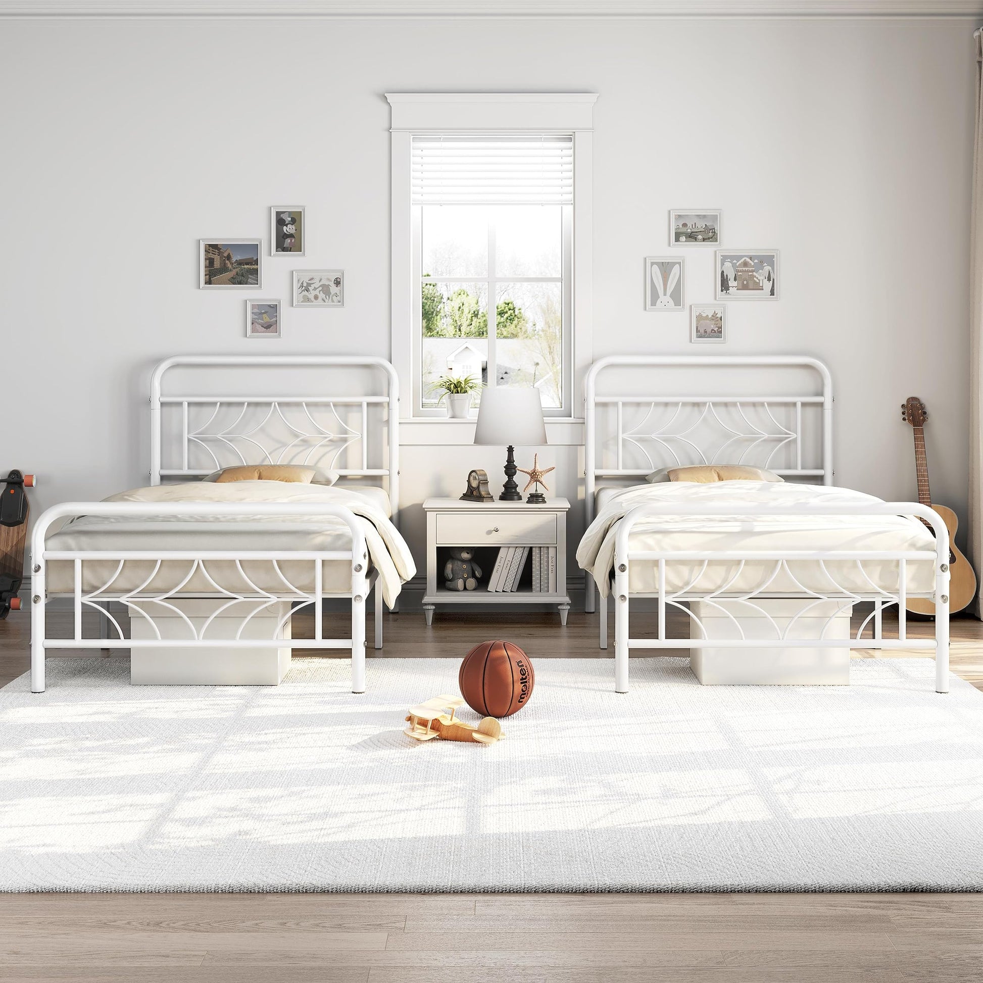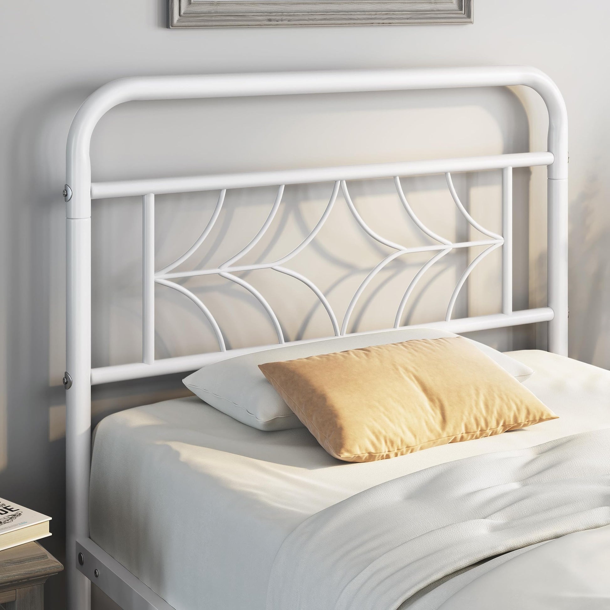 - Sparkling Star Design Headboard & Footboard This metal twin bed frame with headboard showcases an artistically crafted head and footboard with a prominent shining star at its center surrounded by repeating curved weaves that mimic the light of stars. Pair it with your favorite bedding and pillows, and you'll have a beautiful heaven to rest and unwind in.
