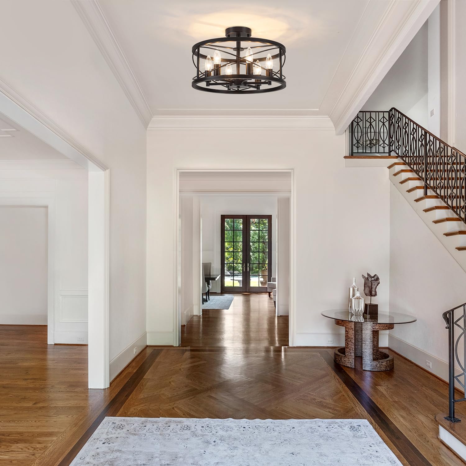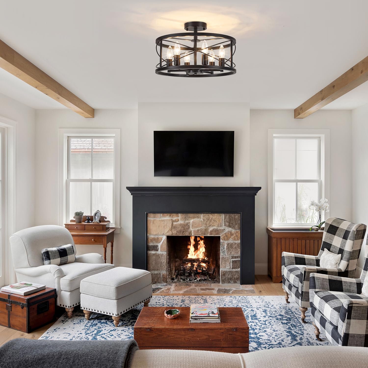 TOULMJ 6-Light Black Semi Flush Mount Ceiling Light, Modern Entryway Light Fixtures, Farmhouse Light Fixtures Ceiling Mount for Kitchen Island Laundry Hallway Dining Room, UL-Listed