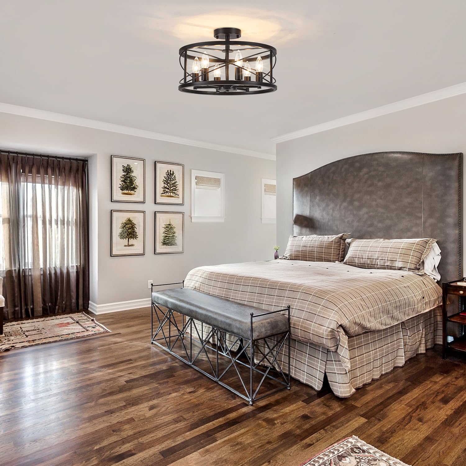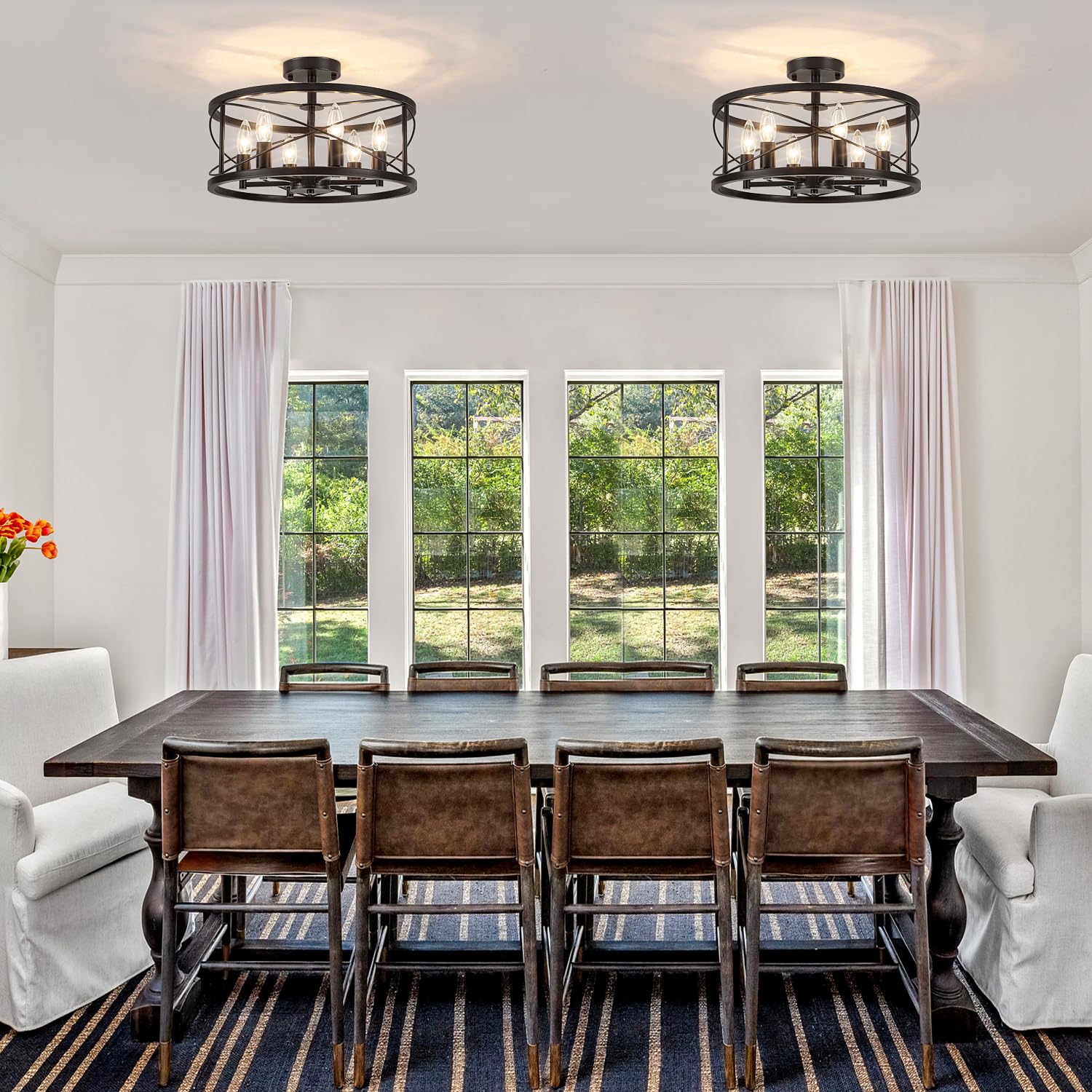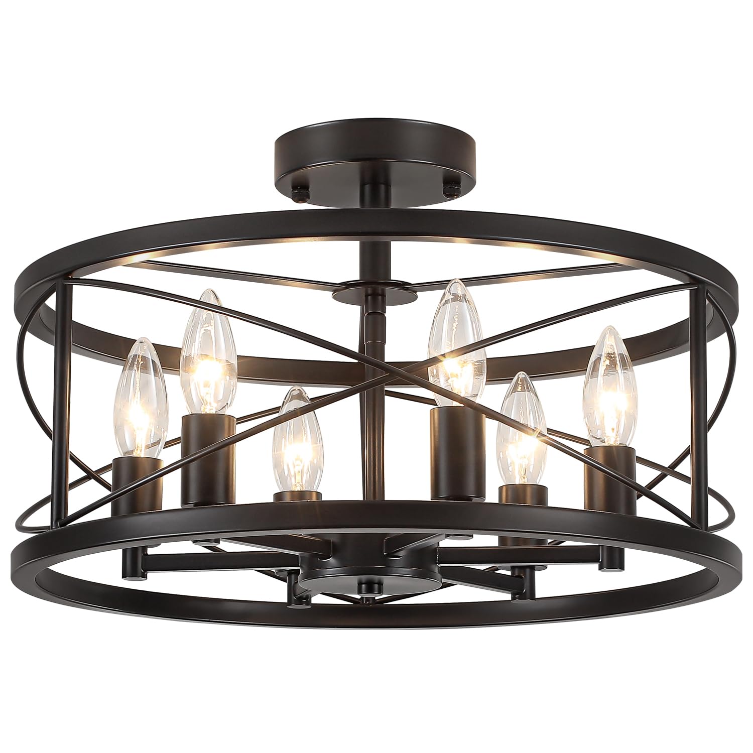 - 【Modern Ceiling Light Size】10.04"H*16.53"W, The round metal frame with criss-cross detailing gives it a unique, industrial look, while the six exposed candle - style bulbs add a touch of vintage charm. The ceiling is thickened, creating a more reliable and safer ceiling light for your house.