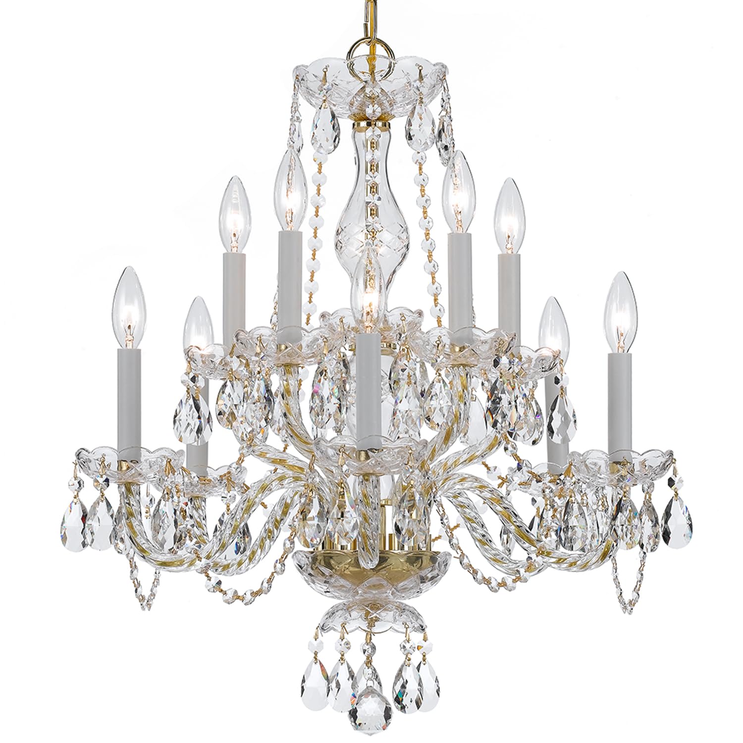 10 Light Clear Italian Crystal Polished Brass Chandelier