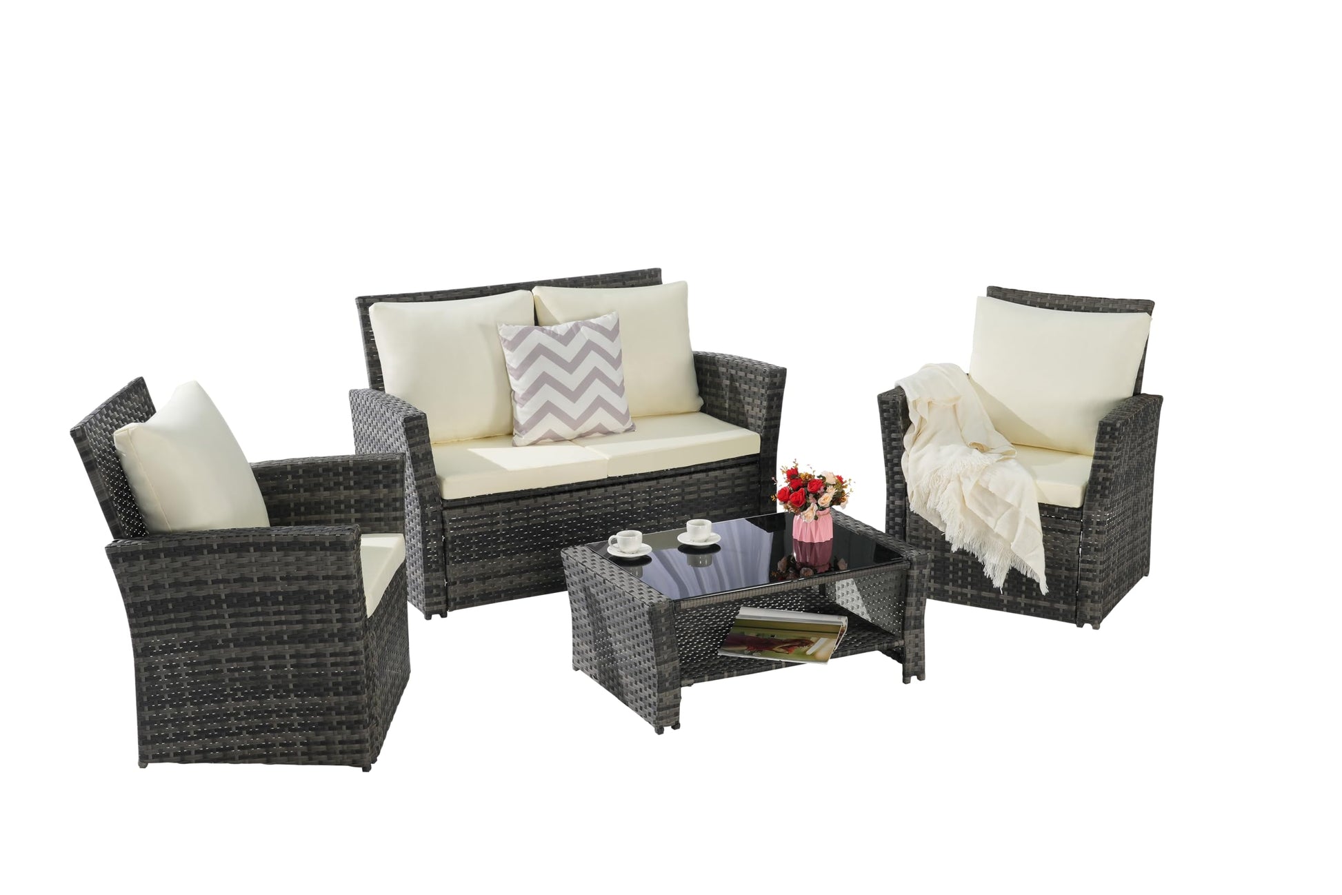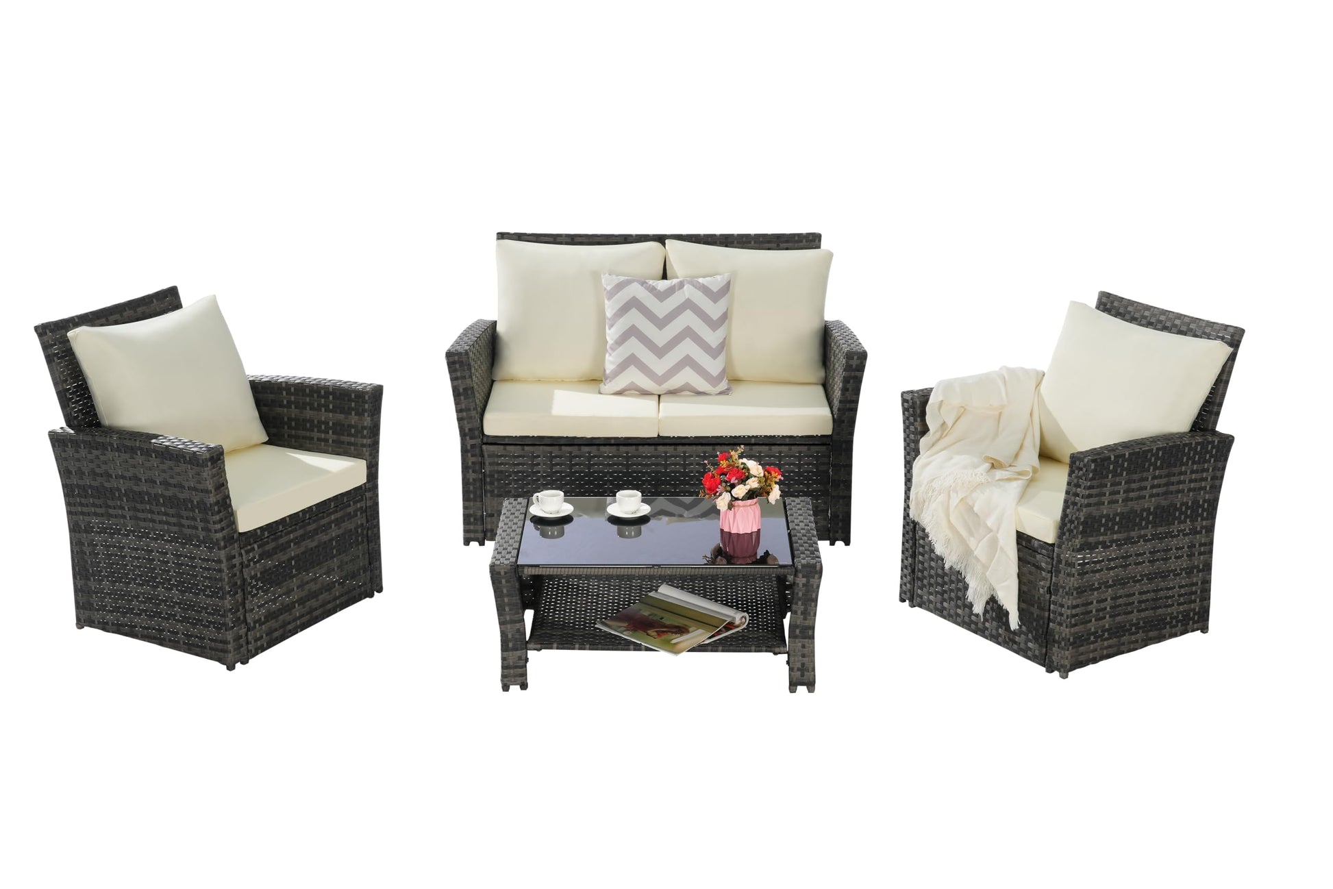 - Stylish Appearance: The elegant gray rattan combined with beige cushions blends with any outdoor decor and enhances your living space.