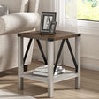 - Farmhouse Feel Featuring a two-tone mix of antique white and cool brown, this industrial end table takes a cue from farmhouse style to create a cozy, swoon-worthy feel in your living space.