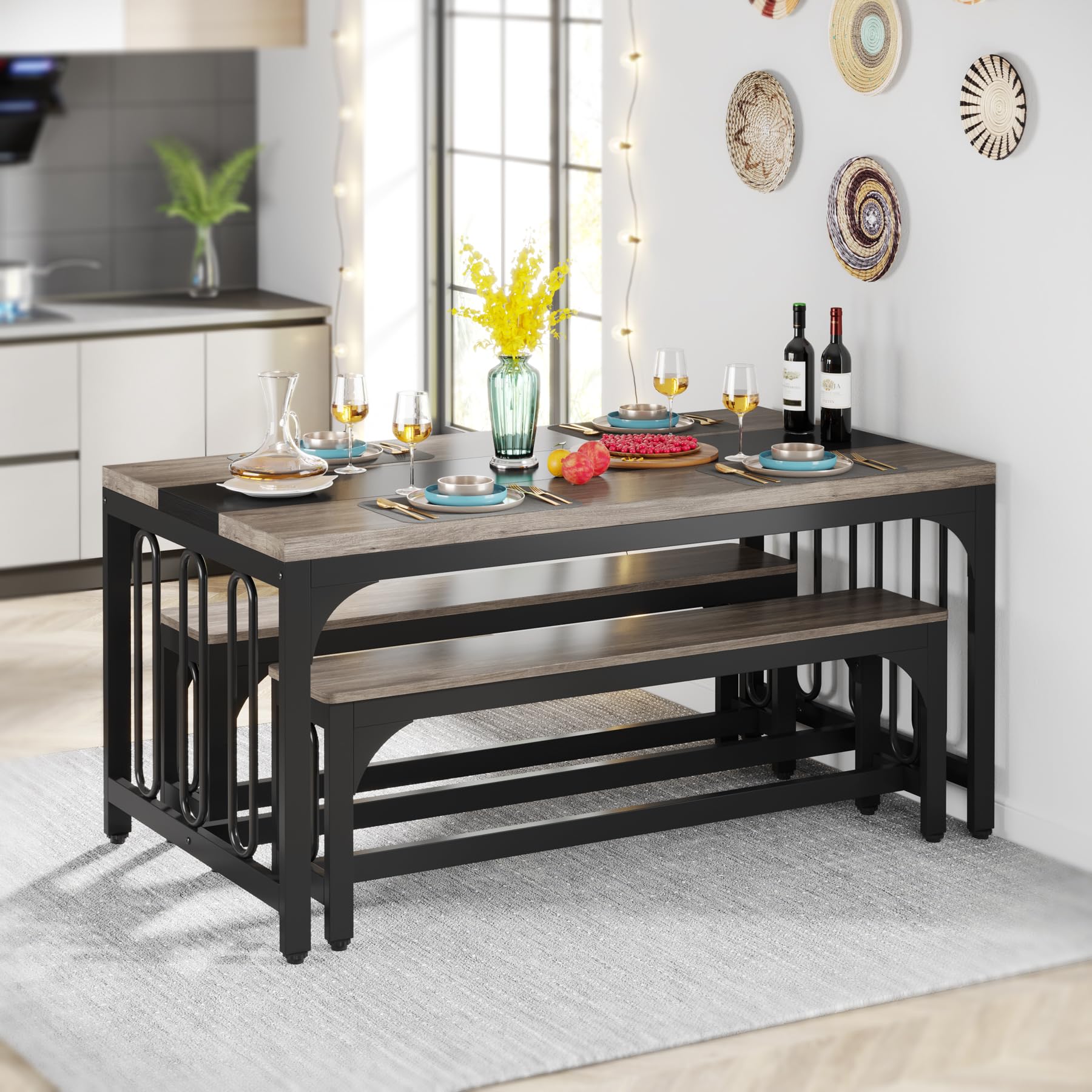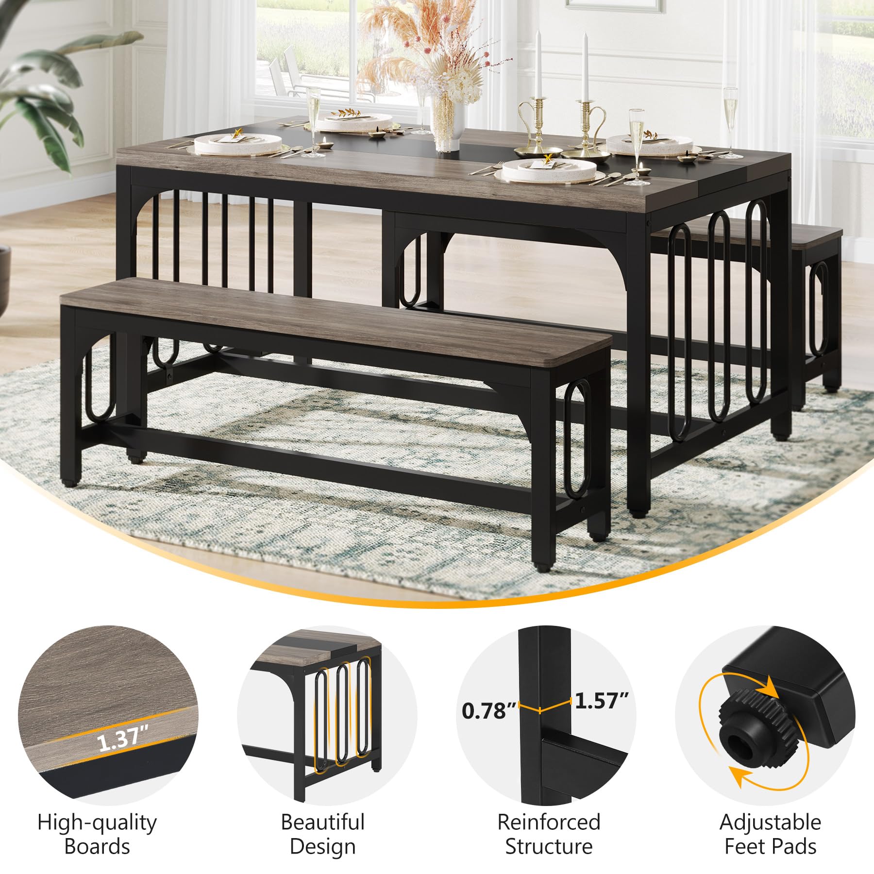 - BUY WITH CONFIDENCE: Coming with labeled parts and illustrated instructions, this Tribesigns bench dining table set could be easily assembled. We provide 24 months' warranty and friendly customer service. We will give you a satisfactory answer if you have any questions.