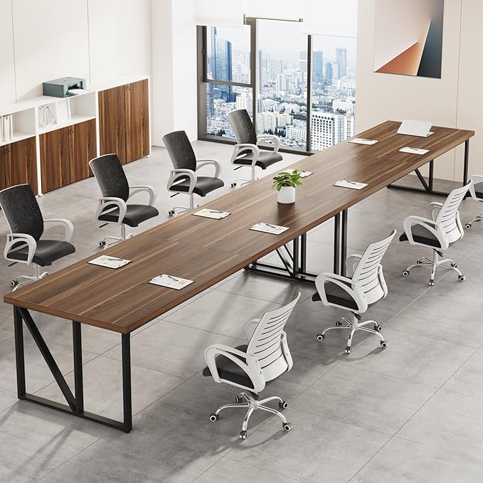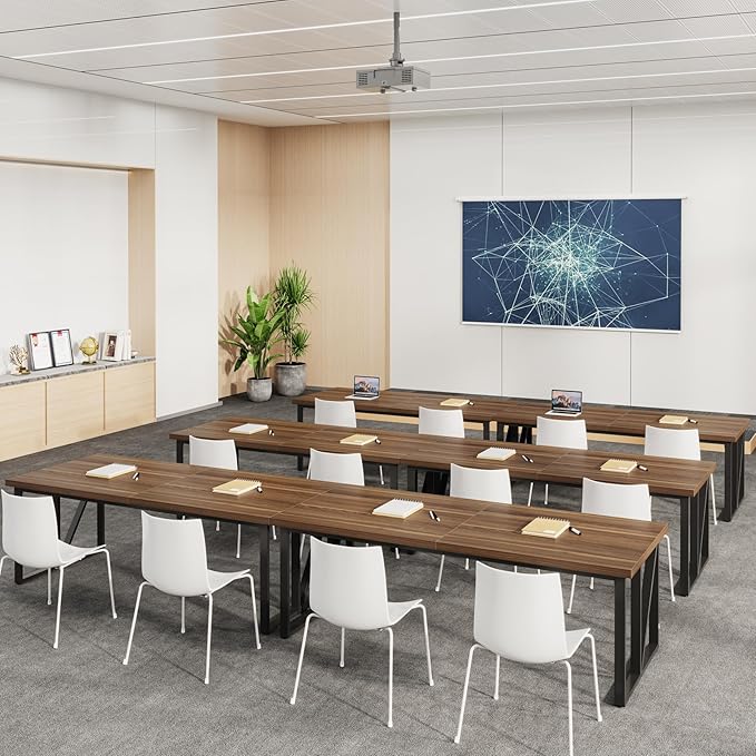 - Constructed with high-quality engineered wood and supported by a heavy-duty metal frame, this meeting table is super solid with a huge weight capacity. Veneered with a premium wood grain finish, the desktop is waterproof, scratch-resistant and easy to clean, ensuring long-term use.