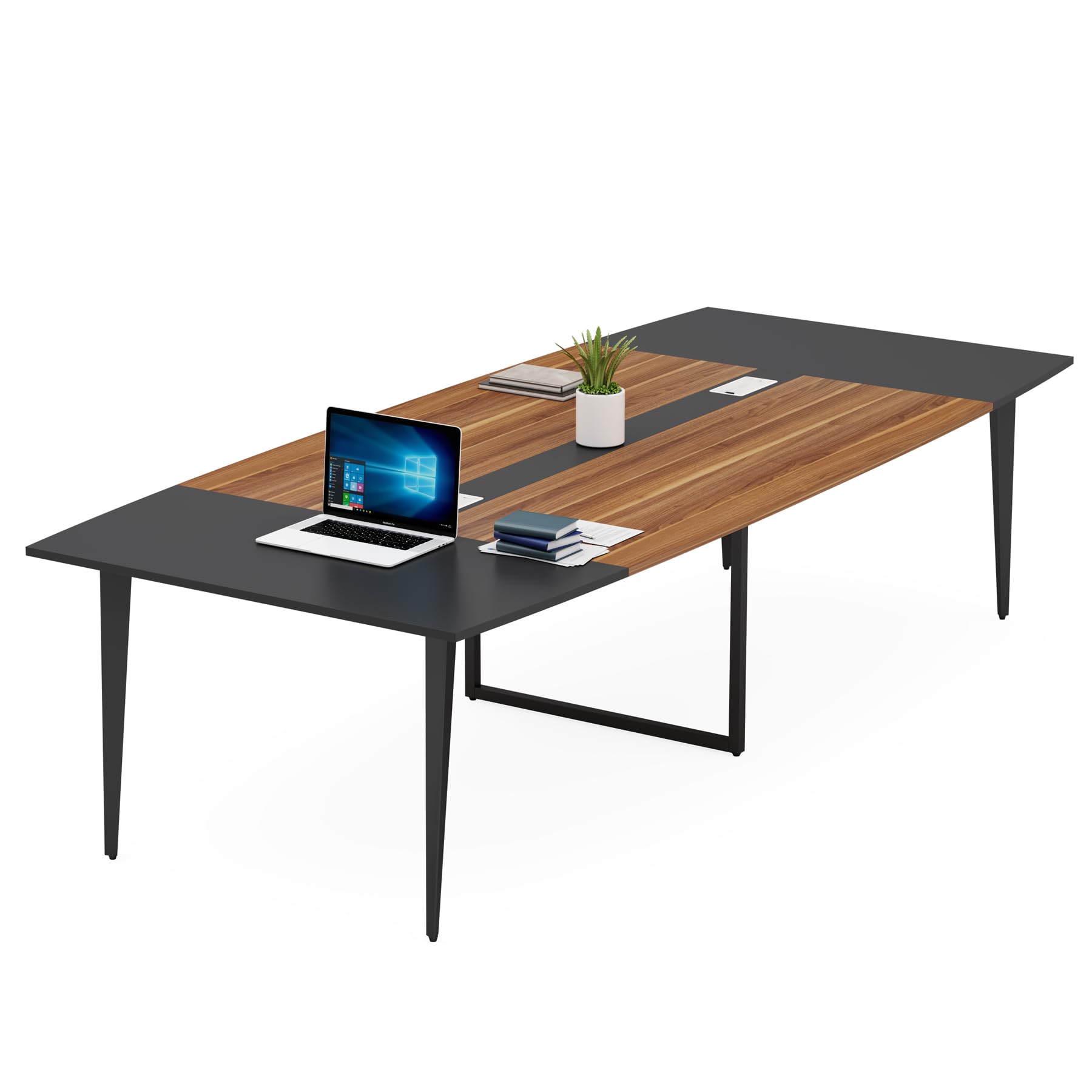 - Comes in a beautiful walnut and black colorway, our conference table has beautiful appearance. It is perfect for your contemporary private or open-concept office space. Meanwhile,the boat curve design enables your team to see everyone around the table