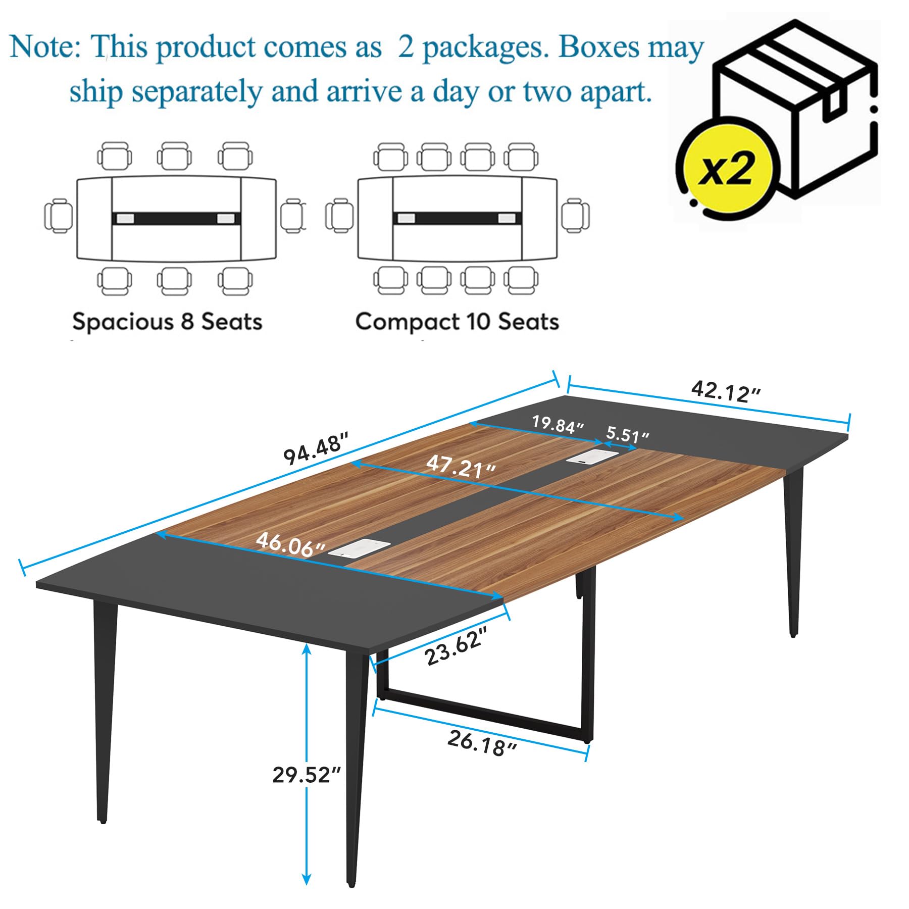 8FT Conference Table, 94.48L x 47.24W x 29.52H Inches Boat Shaped Meeting Table