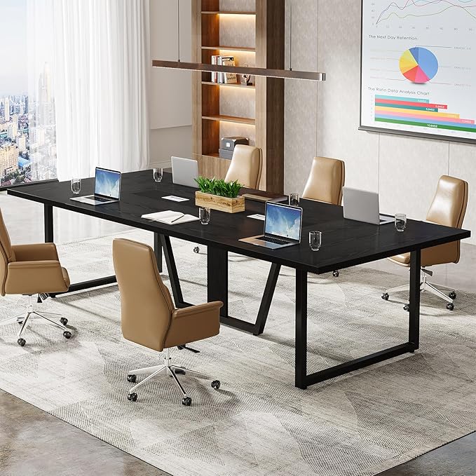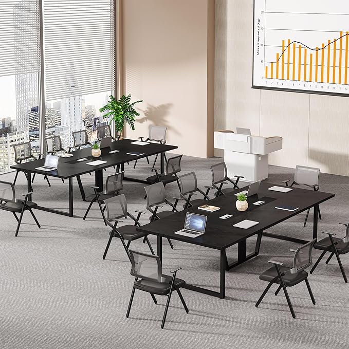 - Accommodates 10 People: Measuring 94.49"W x 47.24"D x 29.53"H, this large meeting table easily accommodates 8-10 attendees. Ideal for meetings, its generous leg space provides much-needed comfort during prolonged sittings
