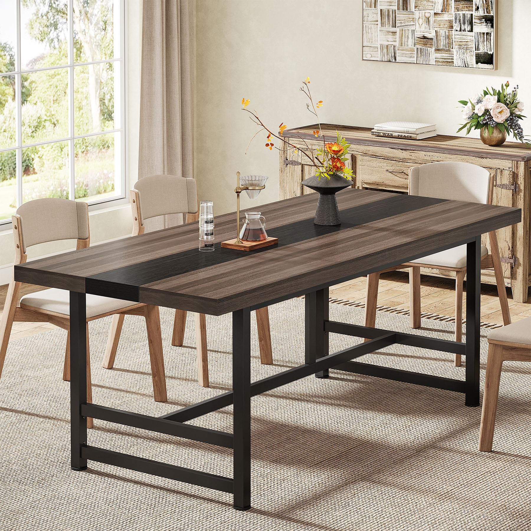 Dining Table for 6-8, 70" Rustic Kitchen Table with Metal Frame