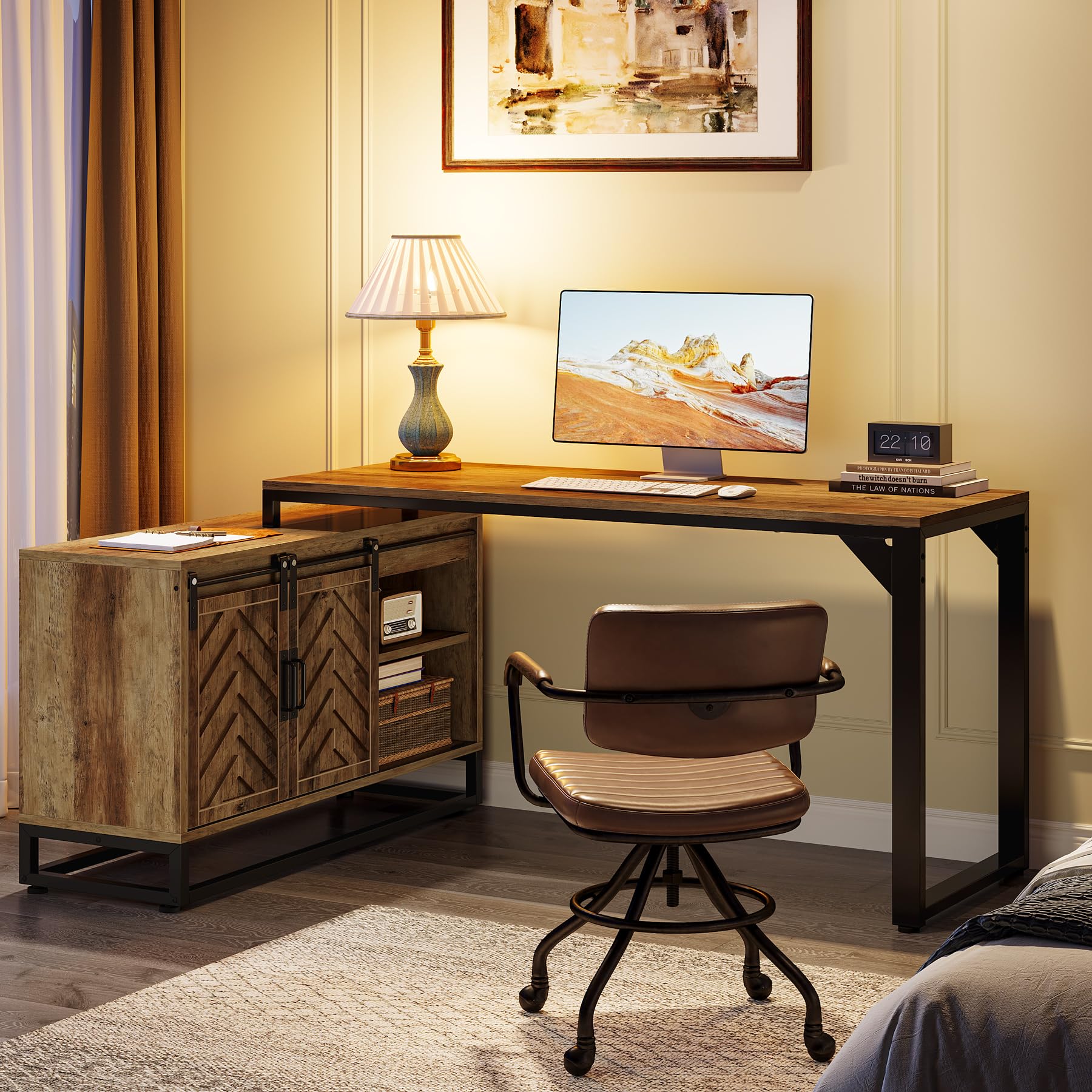 - Reversible L-Shaped Desk: With a flexible and convertible design, you can place the storage cabinet on either the left or right side to meet your specific needs. The sliding doors allow for easy access to office supplies, improving your work efficiency
