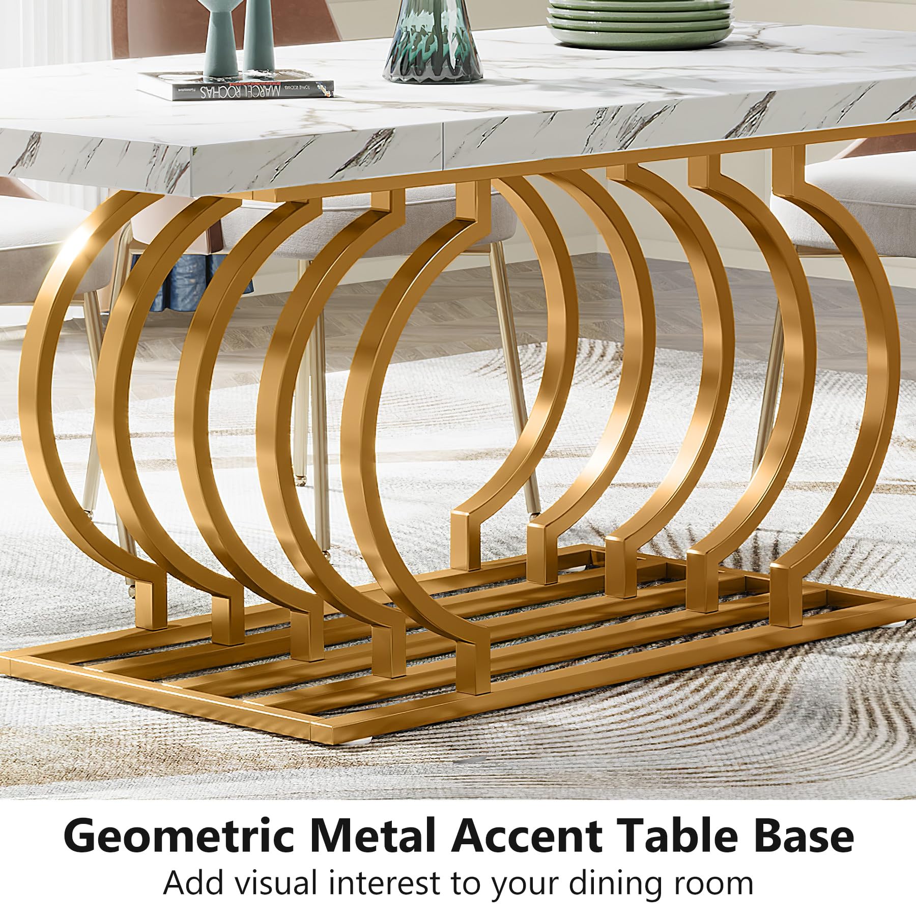 - LUXURIOUS FAUX MARBLE TABLETOP - The stunning faux marble top is designed to impress your guests with its realistic look and feel, adding a touch of elegance to every meal. Featuring a 1.96-inch thickened top made from sturdy MDF and sturdy laminate, it stands the test of time. Whether you're hosting a formal dinner party or enjoying a family meal, this luxurious faux marble tabletop is the perfect addition to your home.