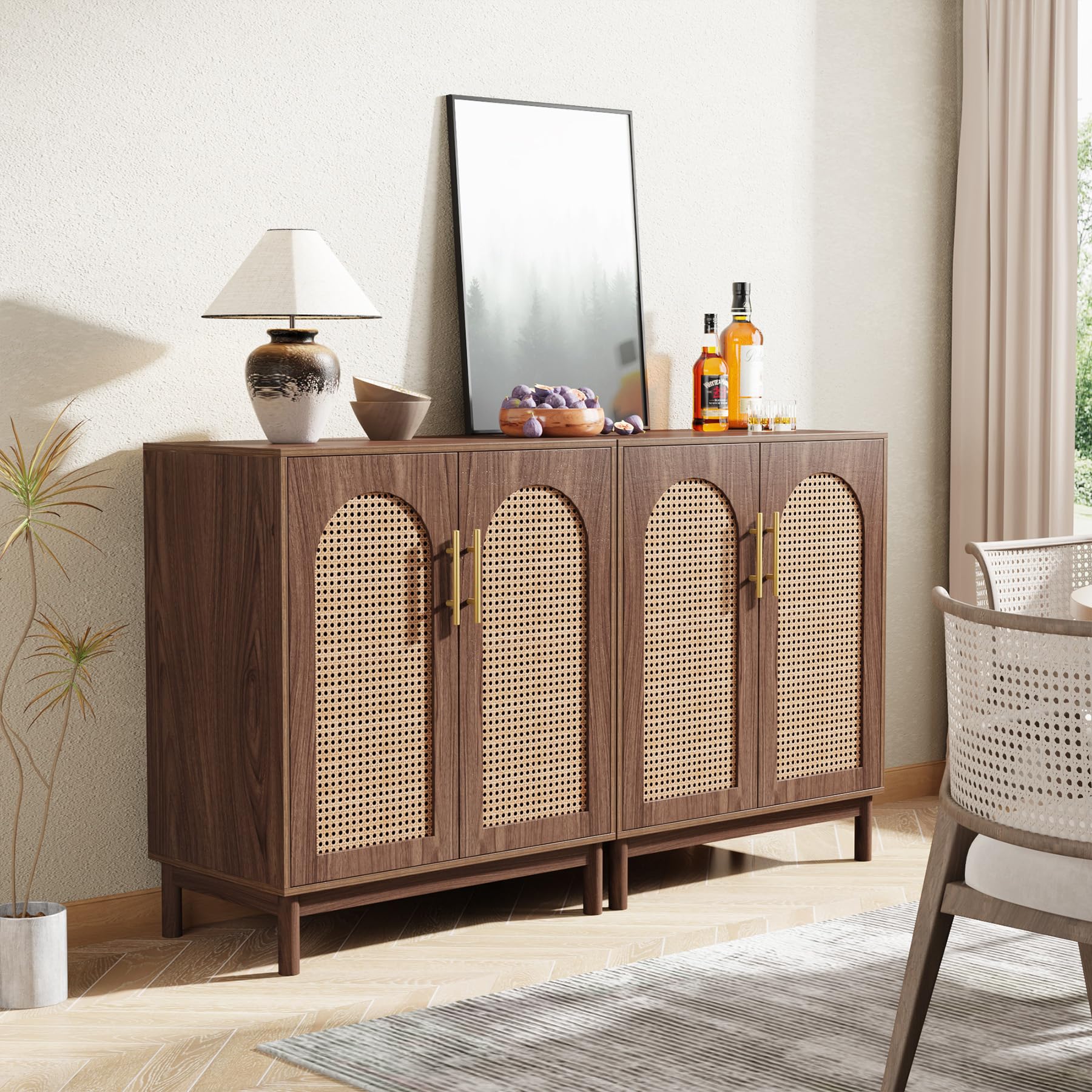 Set of 2 Rattan Sideboard Buffet Cabinet with Storage, 59 Inch Accent Cabinet with Doors