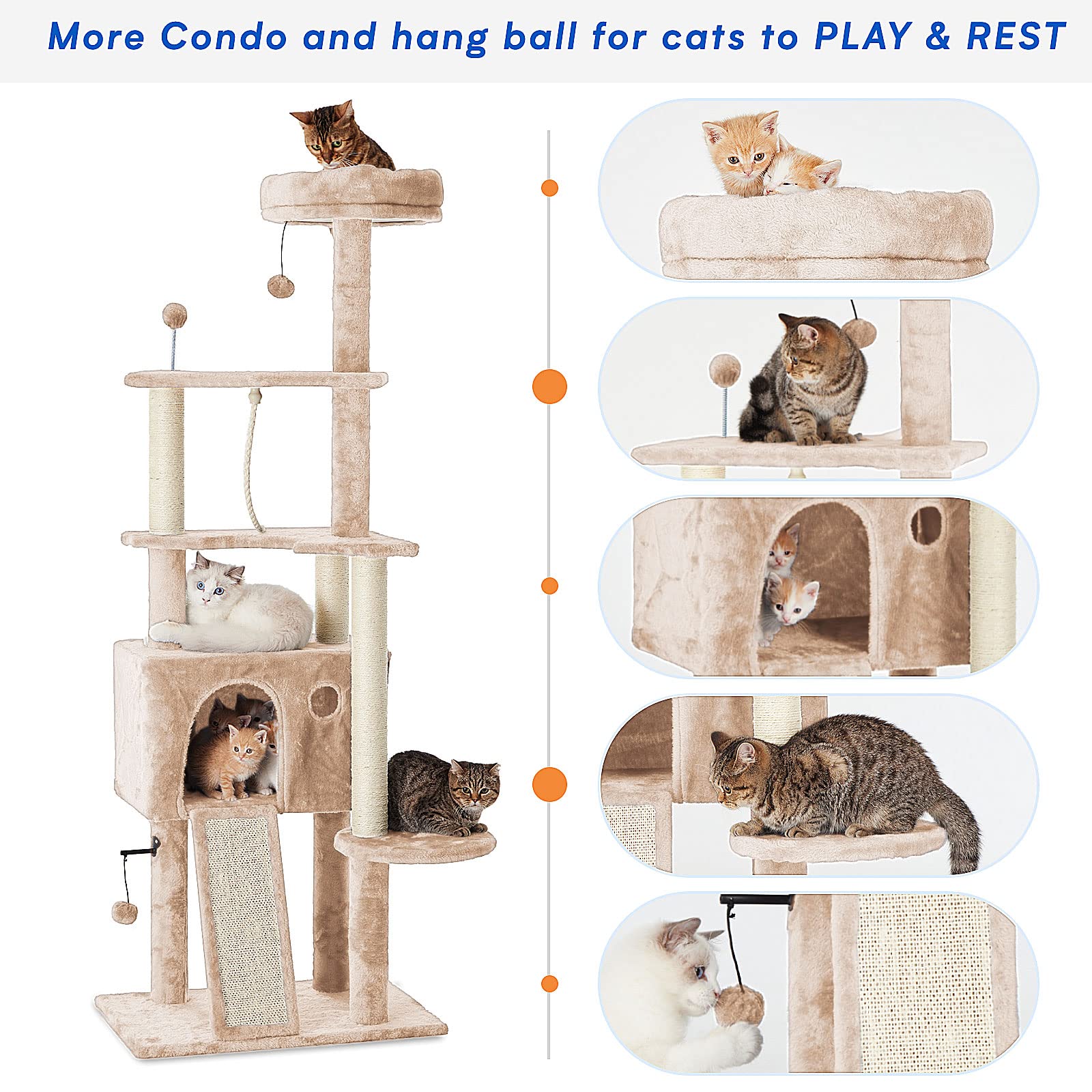 64in Large Cat Tree Cat Tower for Indoor Cats