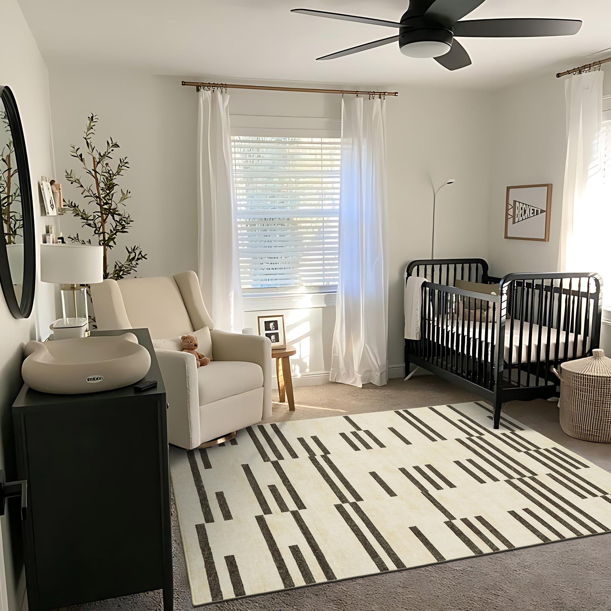 - Foldable Rug with Style: This modern area rug 5x7 with two-toned combines different sized stripes to create a casual yet glam design. It’s perfect accent for a contemporary or minimalist styled rooms. 5x7 rug is not only stylish but also conveniently foldable, making our washable rug 5x7 easy to carry and tiny to store. If temporary creases appear upon arrival, simply smooth them out, lay the living room rug 5x7 flat on the floor, and walk around; the creases will naturally disappear within a few days.