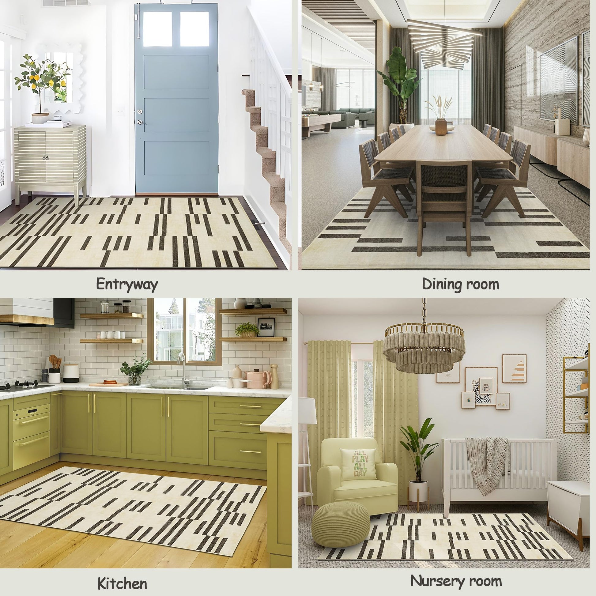 TTelephant Modern Machine Washable Area Rug 5x7, Spill-Proof Surface, Non-Slip Backing, Cozy Soft Faux Wool, Indoor Throw Rug, Living Room Rugs 5x7, Bedroom Rugs, Dining Room Rugs - Miro