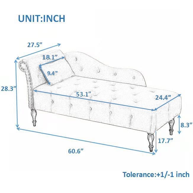 - Classical Style Tufted buttons on back rest and arm, comfortable foam filled cushion, our soft chaise lounge just requires minor assembly. For your home or office, there are a wealth of colors for you to choose from to meet your various matching needs.