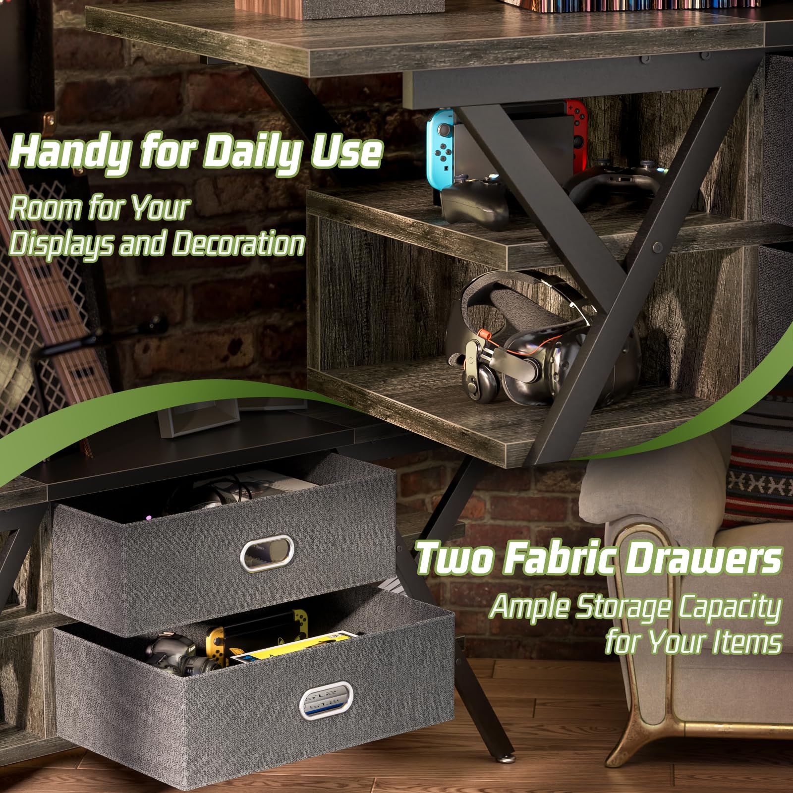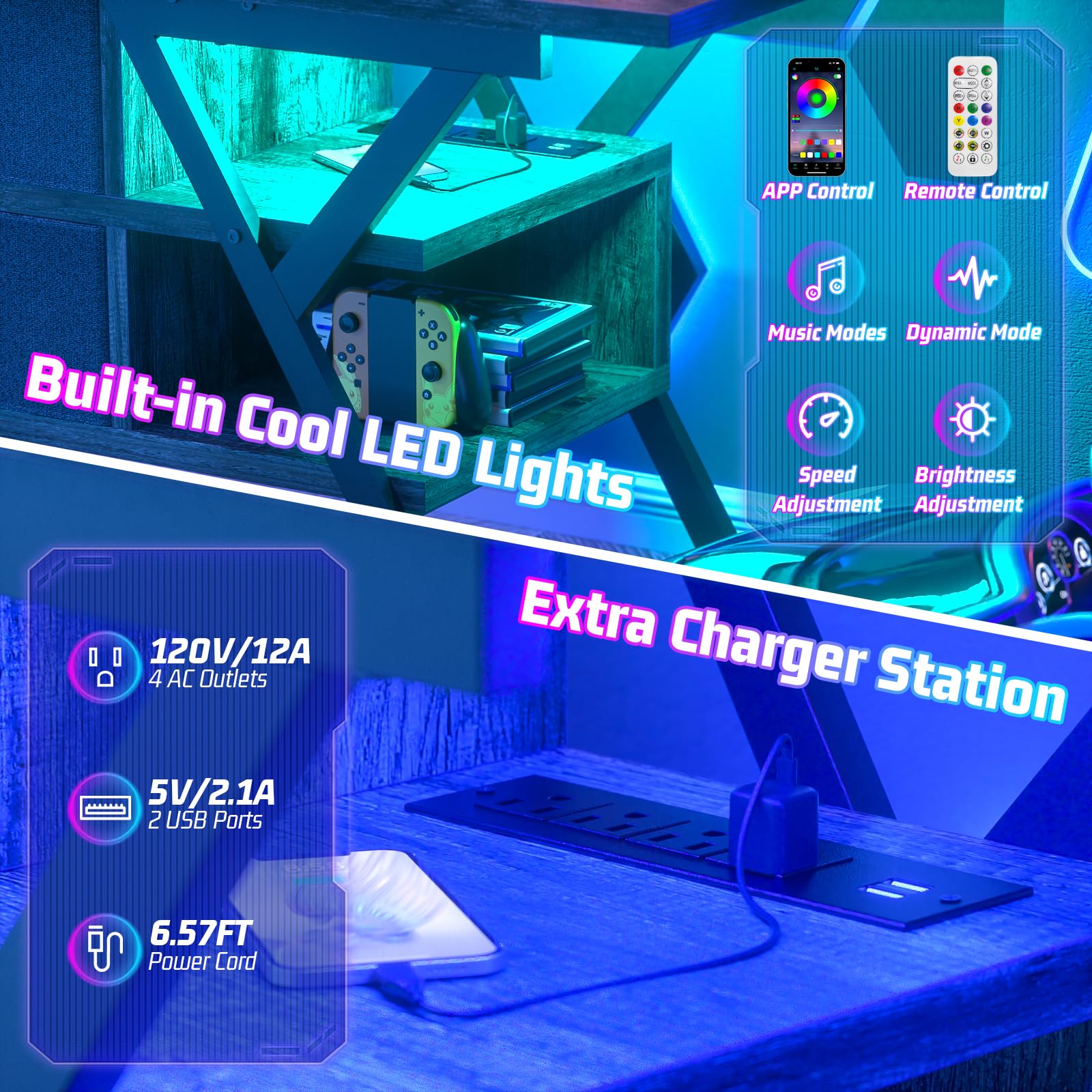 - Considerate Design - Built in a power station including 4 receptacles plus 2 USBs, you can charge your PS5, PS4, game controllers, Xbox, switches, and all your gaming setups on this entertainment center.