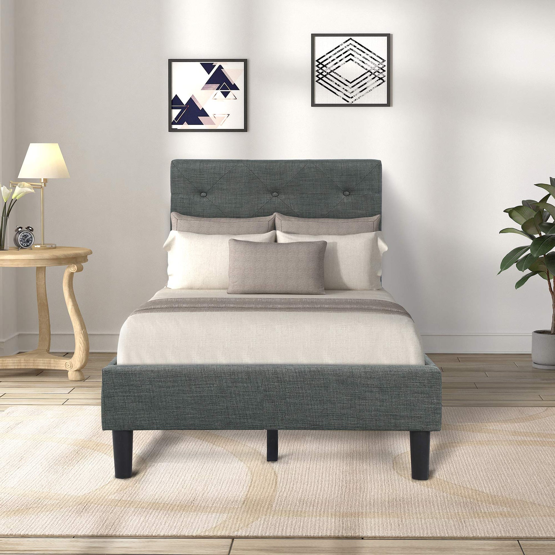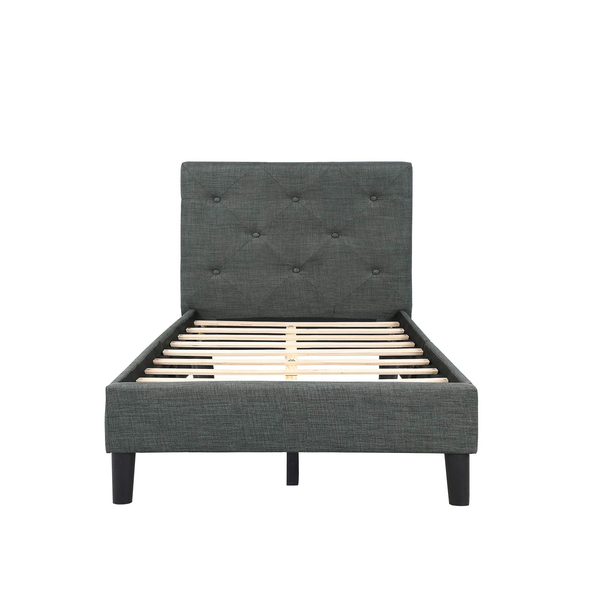 Twin Bed Frame, Upholstered Platform Bed with Headboard Bed Frame and Wood Slats