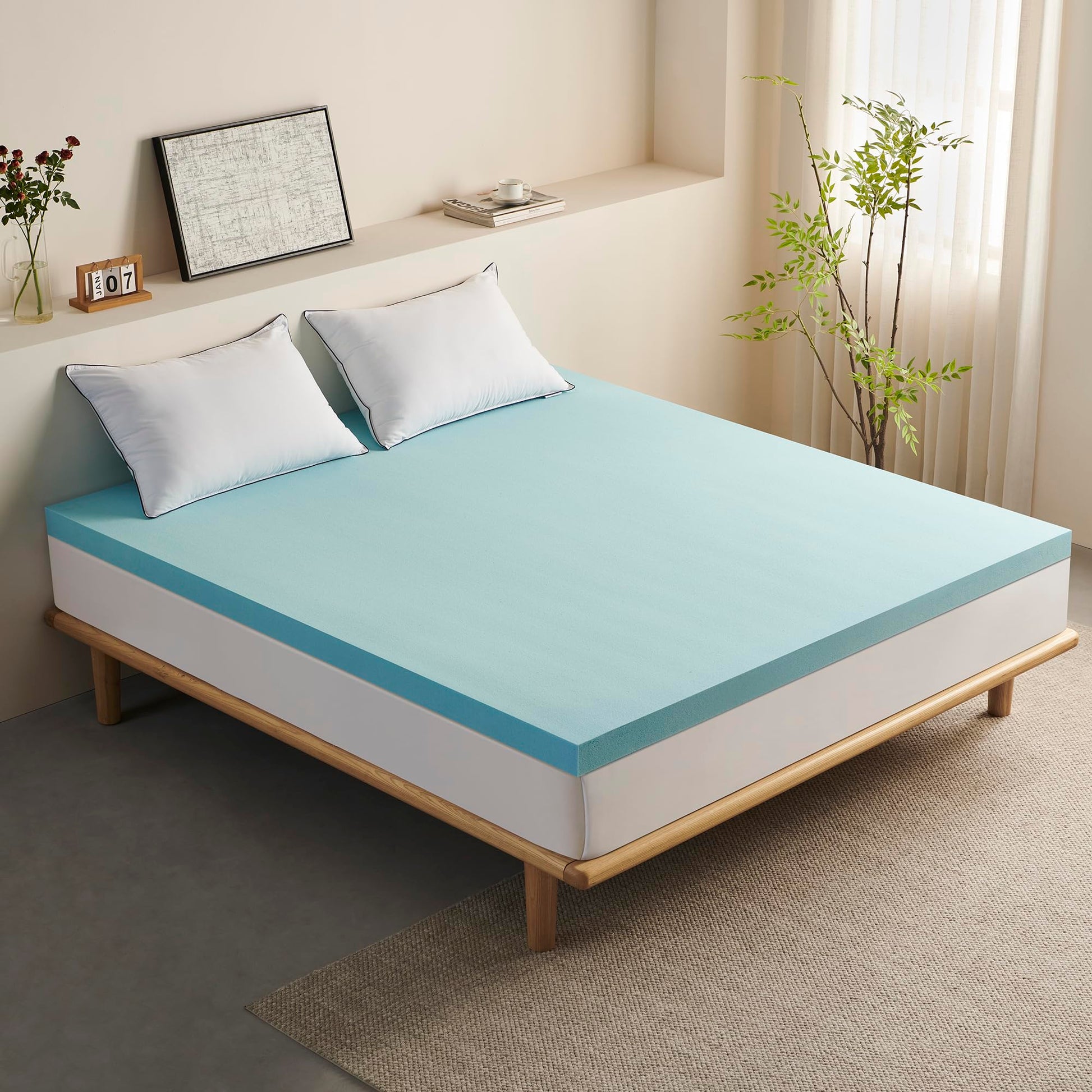- EASY TO USE & INSTALL - Compressed into a single box for convenient shipping, this floor mattress pad simplifies the delivery process. Upon receiving your topper, simply unbox, unroll, the topper expanded immediately. Just open it and give it 24-48 hour to decompress and shed the new foam scent.