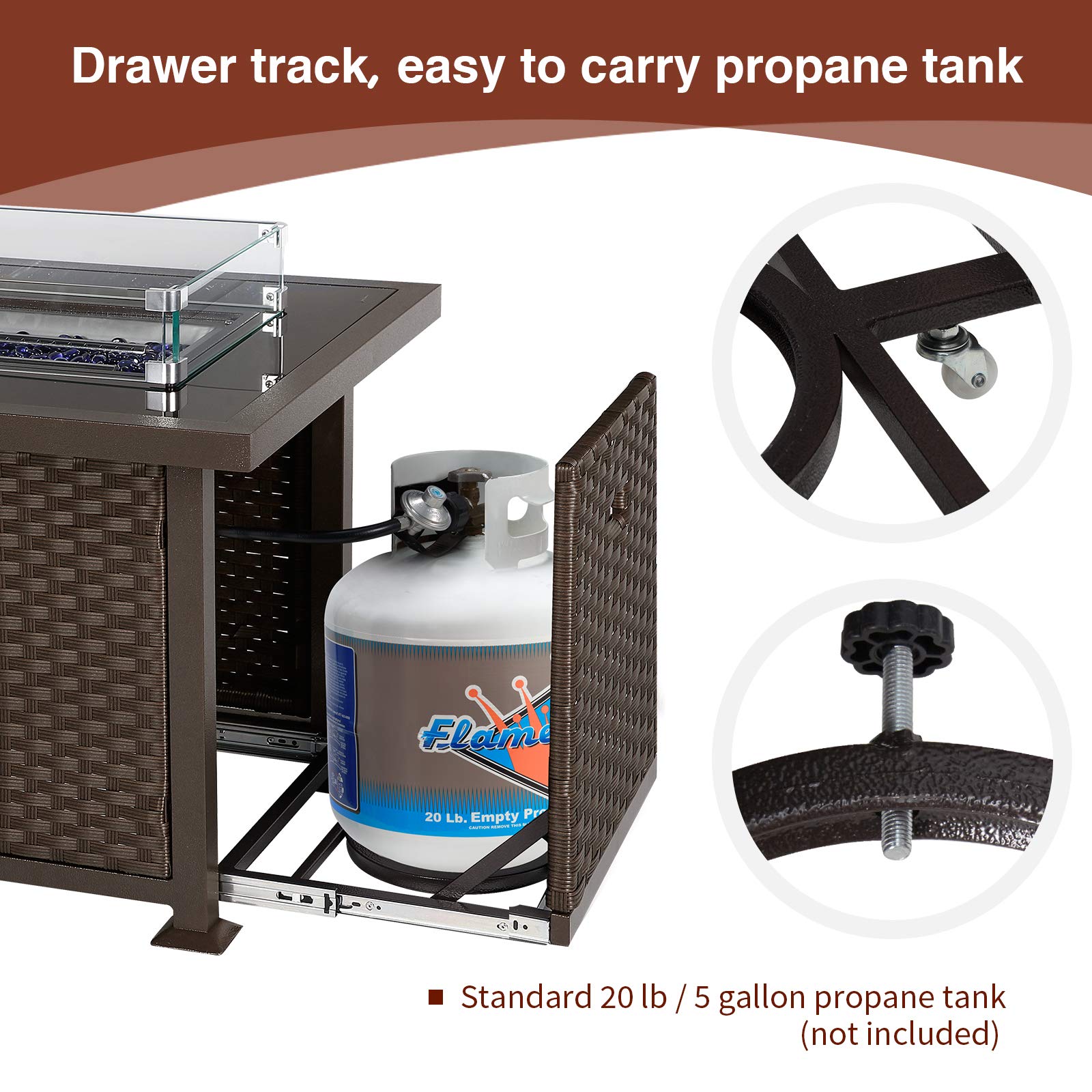 - Durable & High Quality Material : The reliable all-weather-resistant PE rattan bring you impressive strength and durability. The frame of our gas fire pit table is made of Powder-coated Aluminum, which is sturdy, rust resistant and heat resistant. The combination of these two materials looks so beautiful and elegant, perfect for your terrace and backyard.